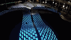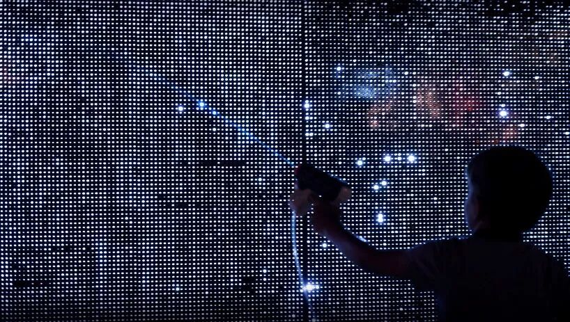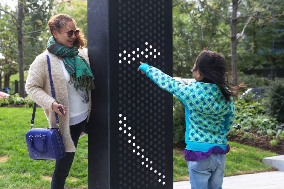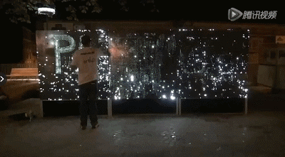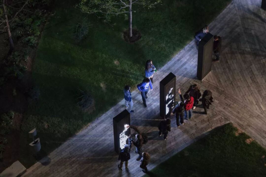 从后到前一看—有数百盏LED灯闪闪发光,那些好奇心让他们更接近的人会得到一个由运动引发的动态反馈——只要你真的接近那块石碑。LED对路人的反应是实时的。