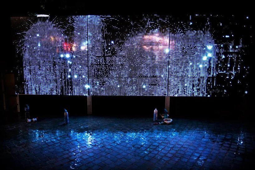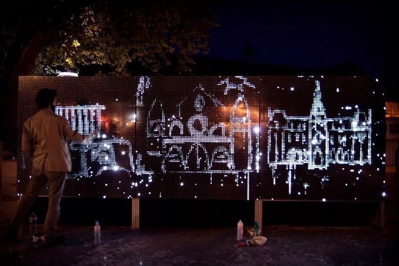 “ 水光涂鸦”是由数千个LED灯组成的墙,通过与水或湿气接触而变亮。公共设施位于法国的普瓦捷,可以用画笔,水枪,手指或任何潮湿的东西来操纵,以嵌入生动的数字信息。