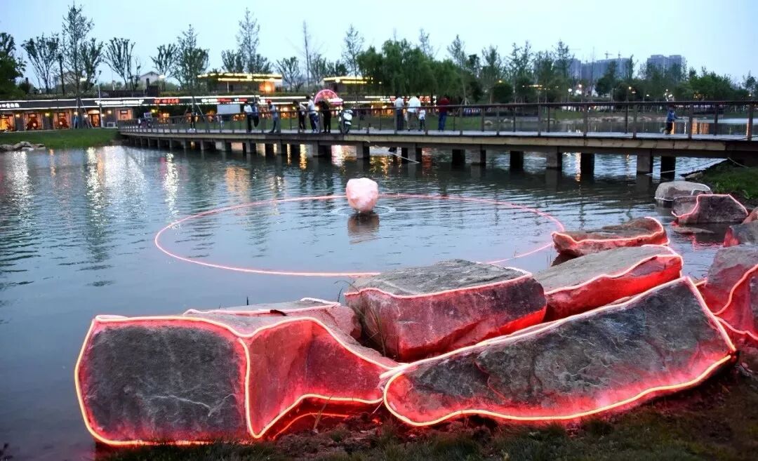 这是光影万象2018中国南京江宁秦淮河国际光影艺术展,光之梦主题下的展出作品。