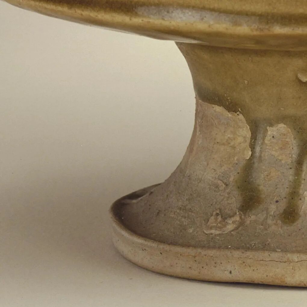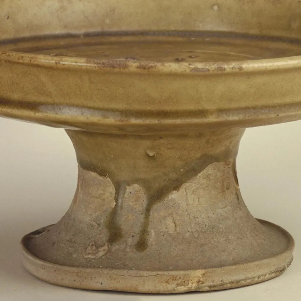 上述瓷窑主要烧造青釉高足盘,釉色淡青而透明,有些可见胎上的黑点杂质。河南的巩义窑在唐代还烧造三彩高足盘。