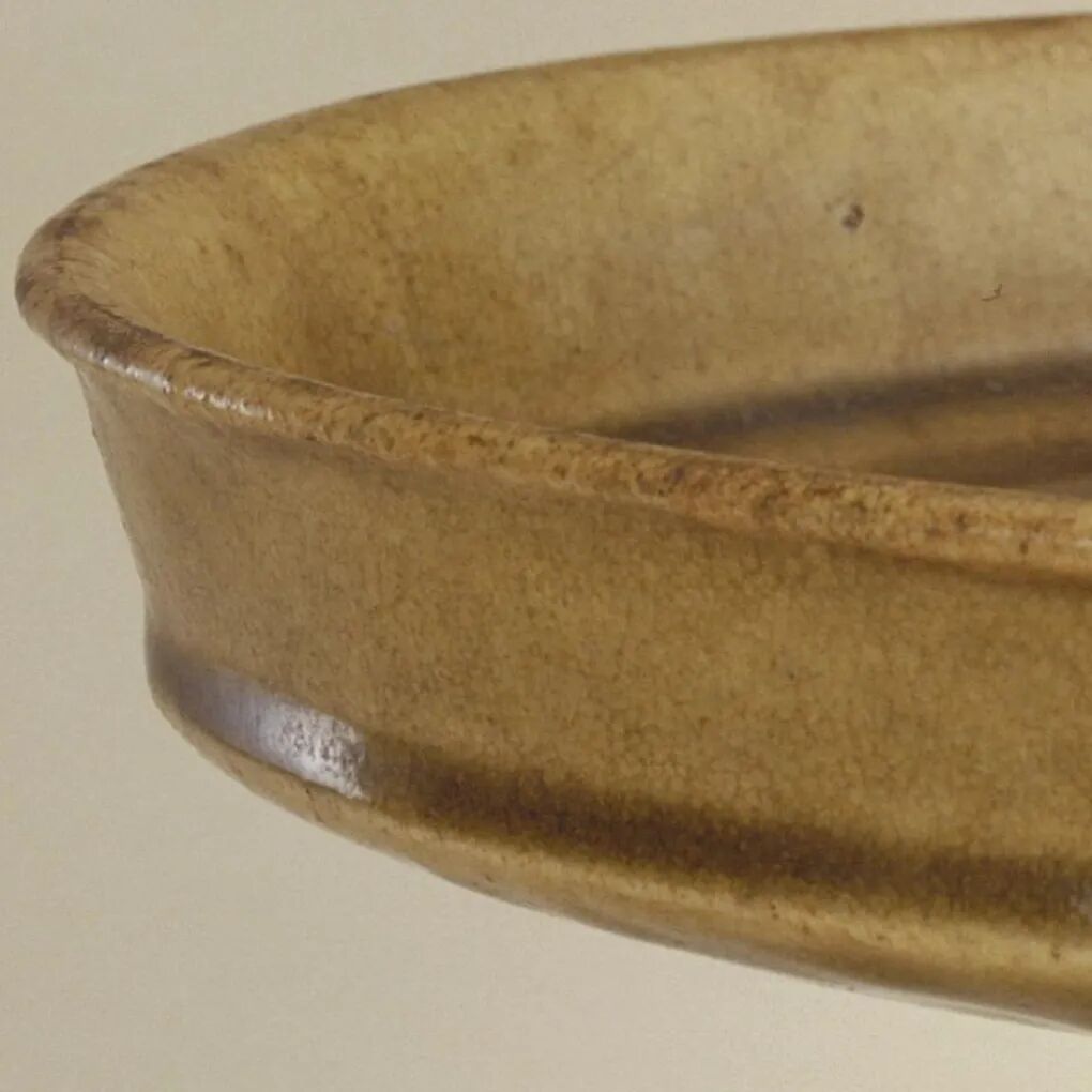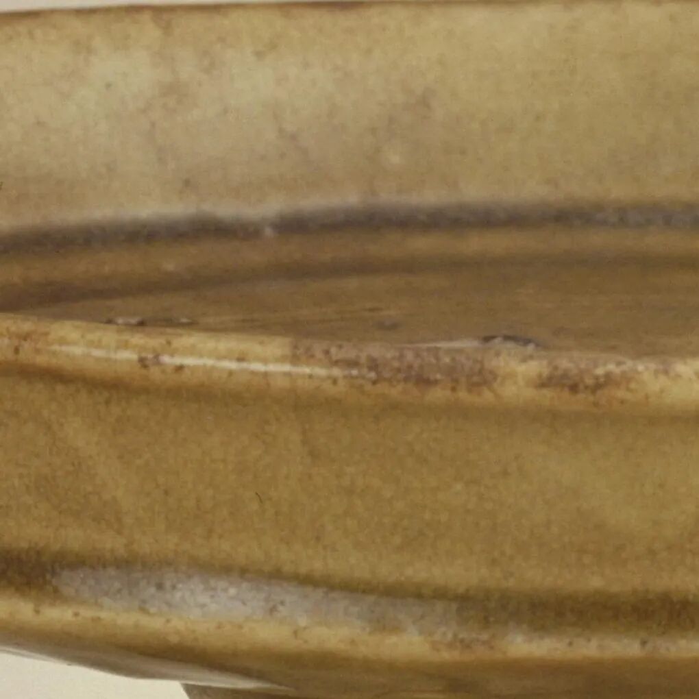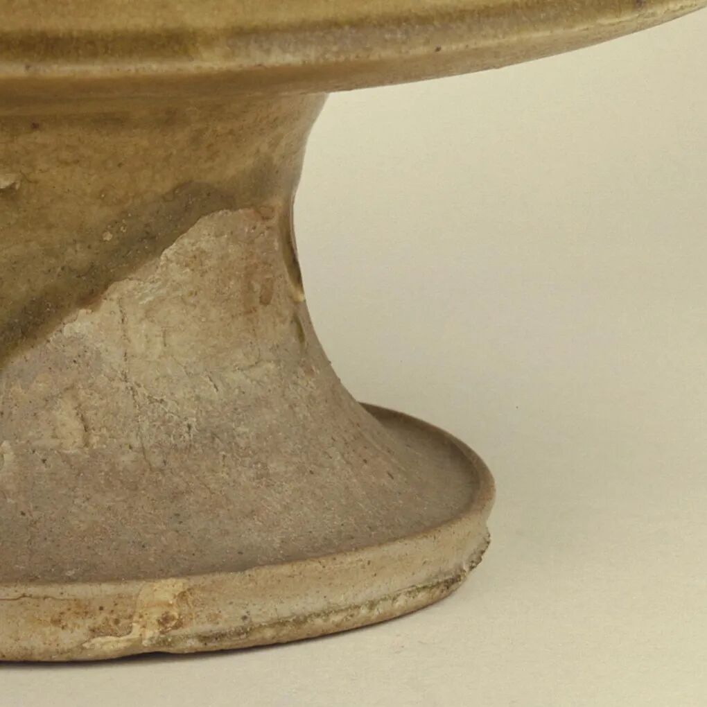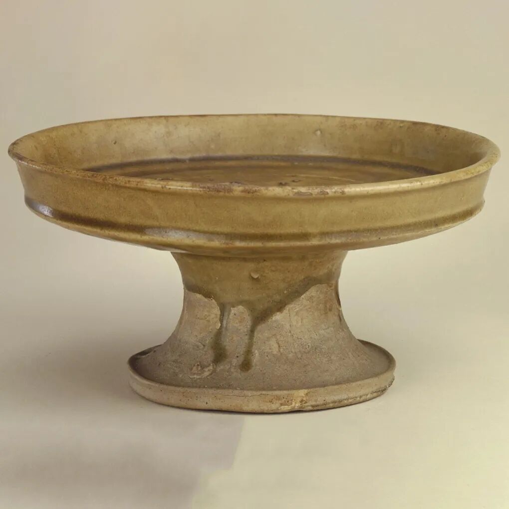 此件高足盘釉色偏黄,从其胎釉特征看,应属安徽淮南窑制品。
