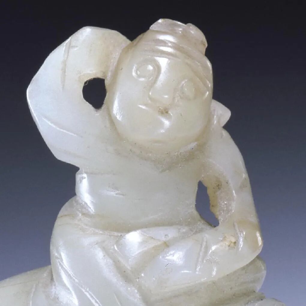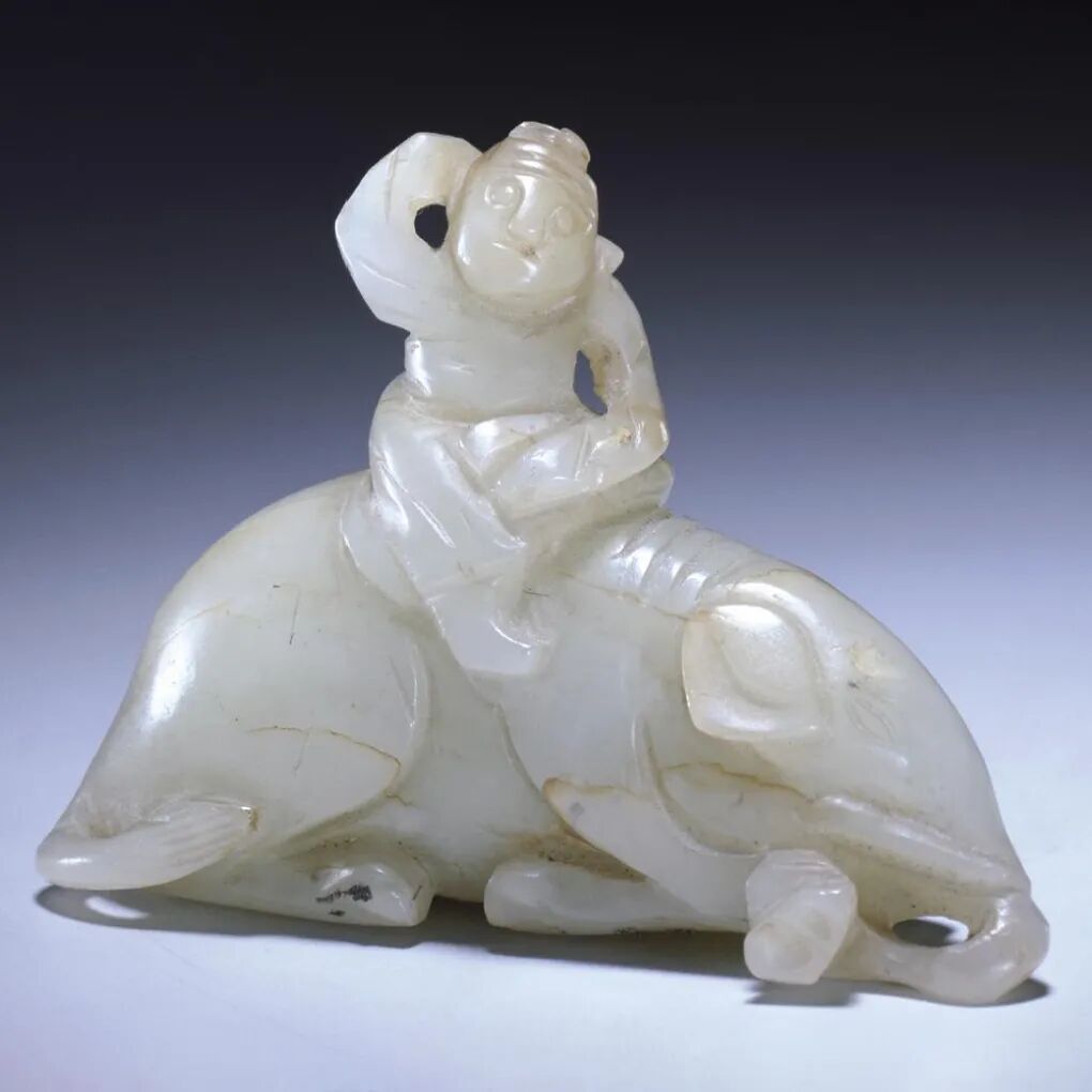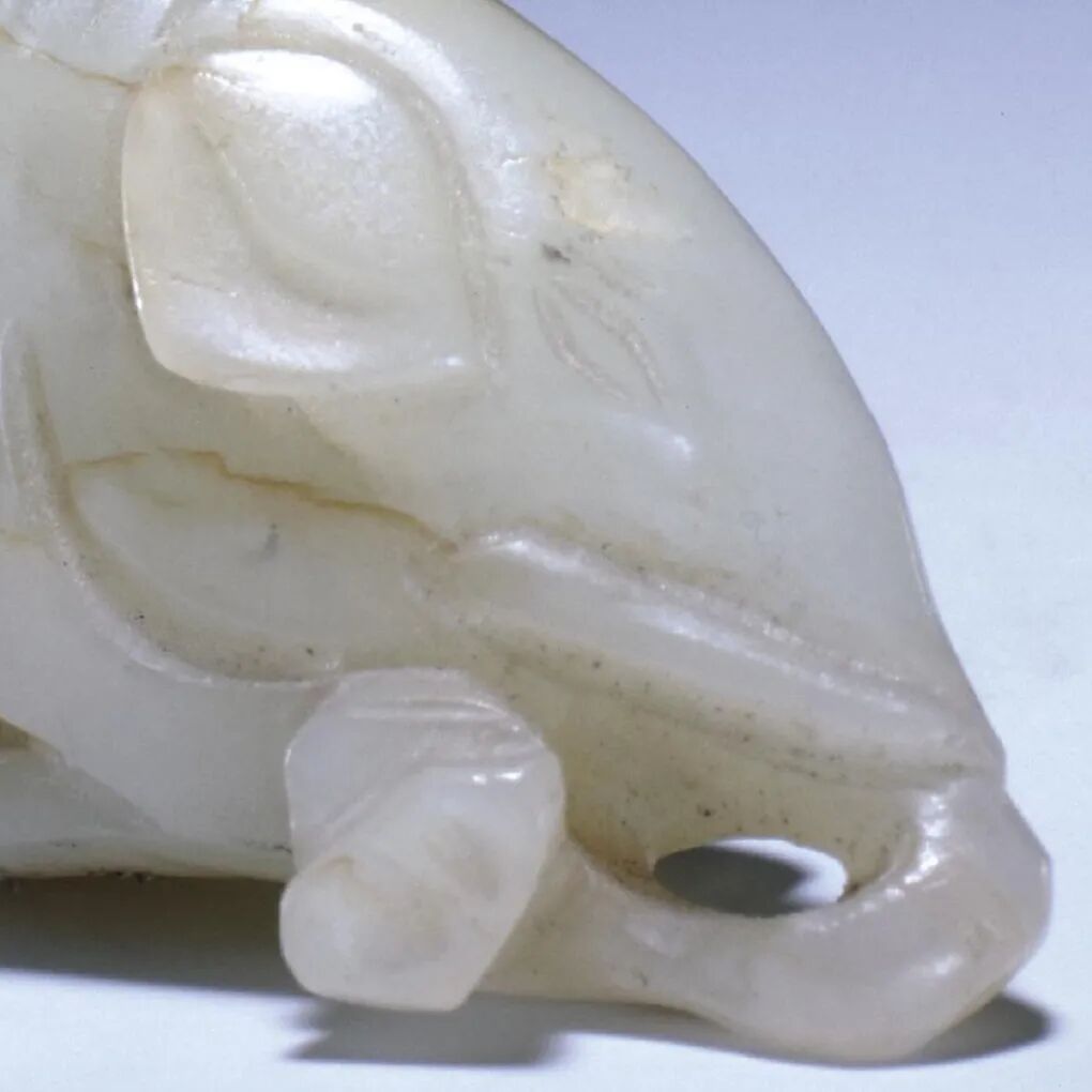 大家好!今天给大家介绍,唐代文物《青玉童子骑象》,高5.5厘米,长7.3厘米,厚2.8厘米。