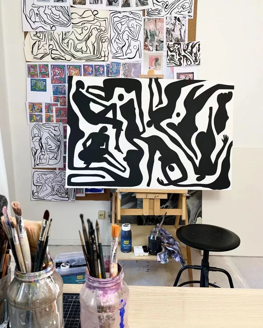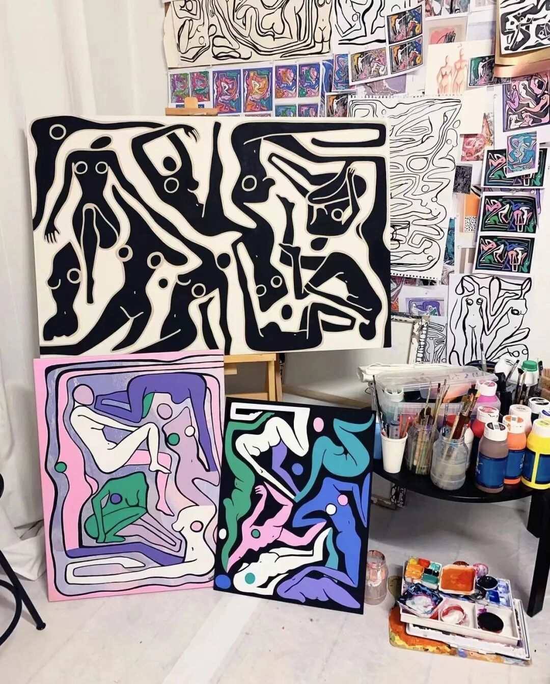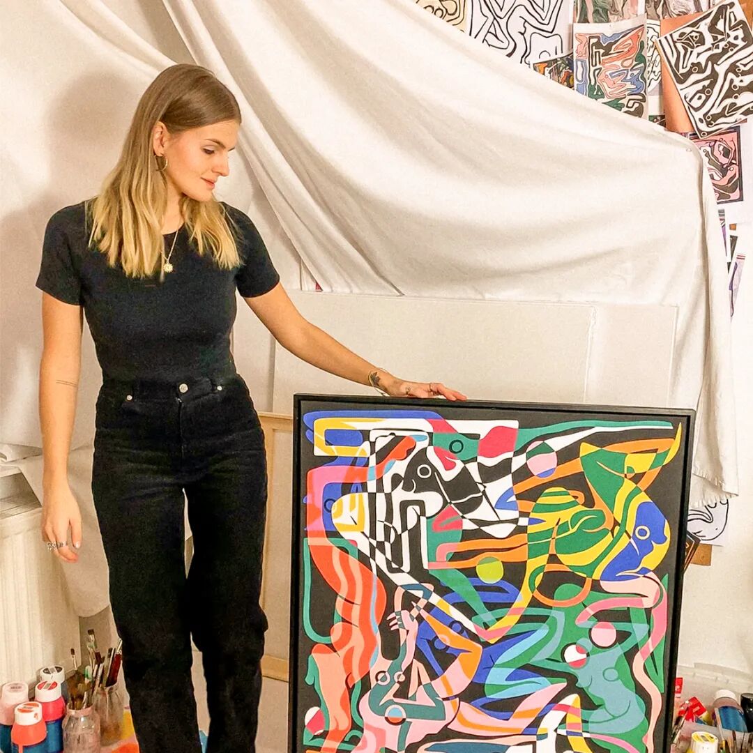 Julia 通过描绘未来女性的愿景,将她的消极想法和经历转化为明亮多彩的画作,庆祝她对女性思想、身体和灵魂的完全控制。她以各种抽象的形状和构图将女性形象化,她想要指出女性之间和对女性的团结、力量和欣赏。