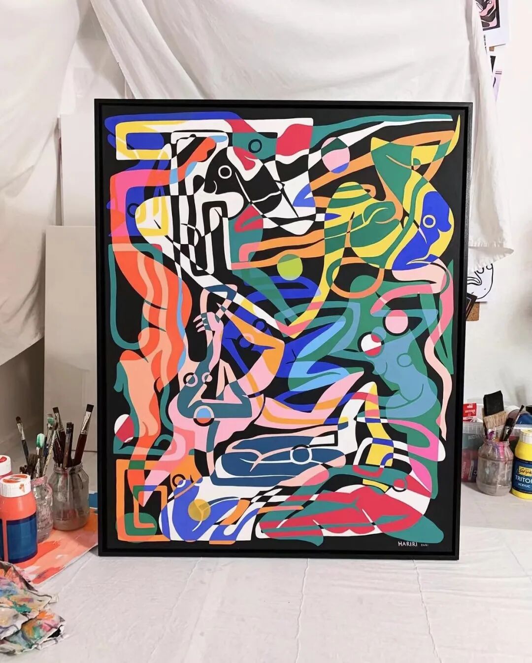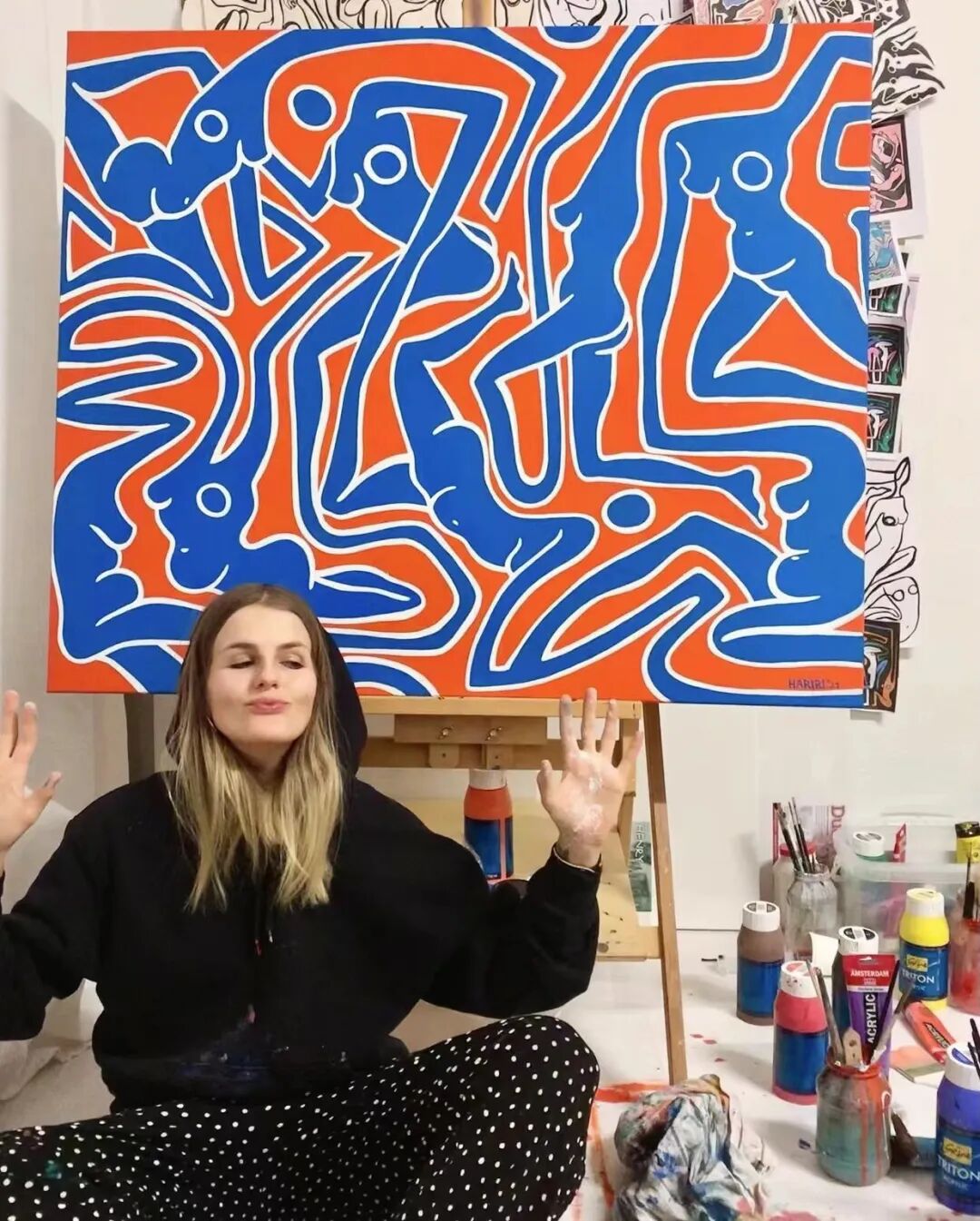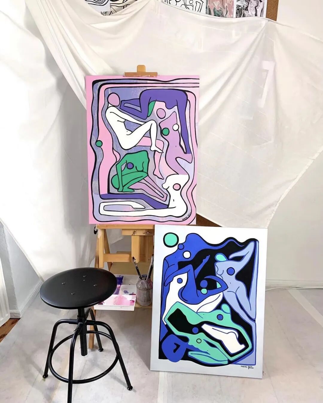 Julia Hariri是一位生活在柏林的抽象艺术家,从幼儿园接触的第一门艺术课程开始,她就对绘画和创作充满热情。Julia在两种文化中成长,作为一半德国人一半波斯人,她意识到她生活中最亲密的女性在经济和情感上都依赖于她们的男性伴侣,因此她对女性在我们的社会中的看法和待遇变得敏感起来。