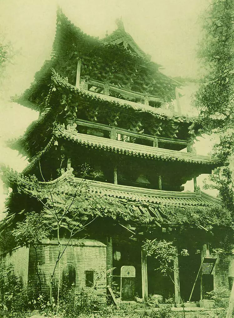 寺院历史悠久,最早可追溯到东晋,历代重修。图中的清式藏经楼今已不存,它与大雄宝殿和方丈室等二百余间房间一起毁于1948年发生的一场大火。今天的藏经楼为1992年所重建。