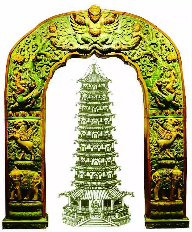 明成祖朱棣为纪念其生母贡妃于南京所建。塔高78.2米,9层8面,周长百米,宏伟瑰丽,叹为观止,被列入当时的“世界七大奇迹”,在西方被认为是中国古建筑当中唯一可与万里长城相提并论的一座建筑。1856年毁于太平天国内讧。南京博物院现藏有一套用备用构建复原而成的拱门。