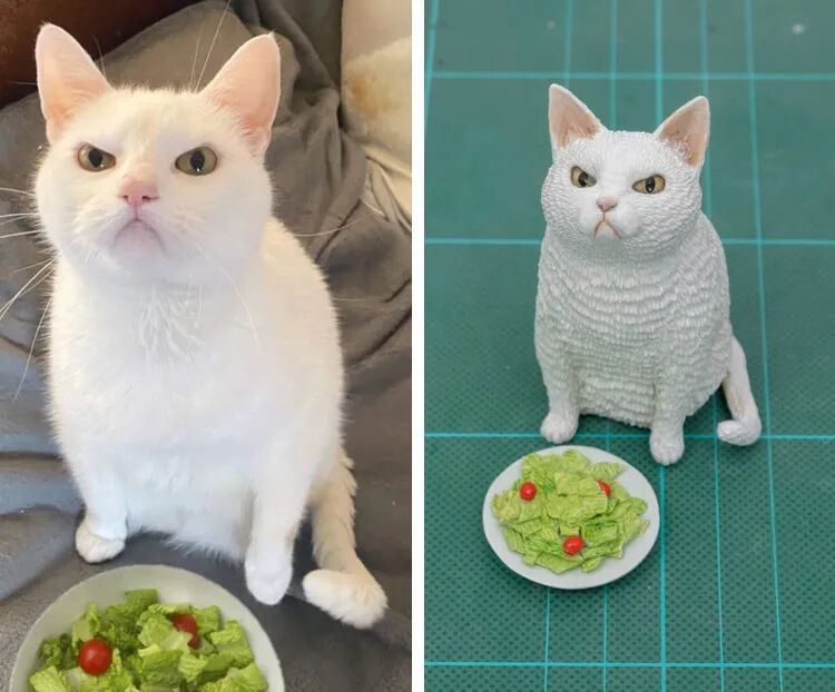 来自日本的艺术家畑山翔平,就是一位掌握了流量密码的雕塑家,与其说他的作品是创意雕塑,不如说是趣味手办更为恰当,几乎每个由畑山翔平制作的手办作品,都能获得极高的人气。作品受到人们欢迎的原因其实很简单,他只会选择网络上那些热门的宠物图片,来进行制作,这些宠物图片本身就自带大量的关注度,被他制作成手办之后,毫无悬念又会引起一波轰动。