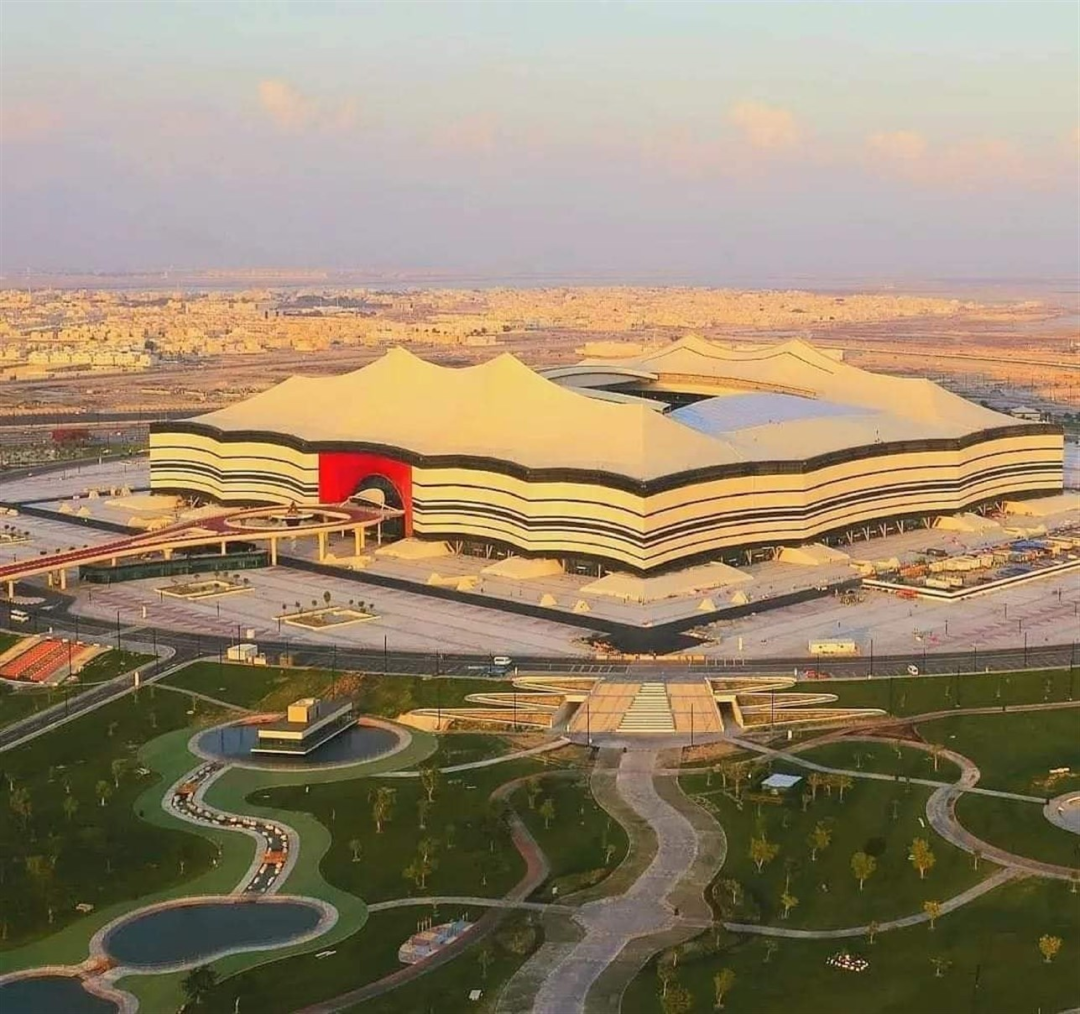 阿尔拜特体育场(Al Bayt Stadium)在此次世界杯中第一个亮相的足球场,由Dar Al-Handasah设计。灵感源自古代中东地区游牧民族使用的贝都因帐篷,建筑外围主色调是黑色与白色,具有浓烈的卡塔尔风格。