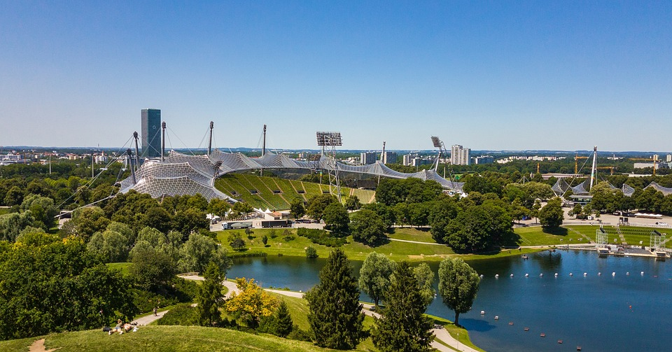 慕尼黑奥林匹克球场是1974年德国世界杯的举办地,球场以帐篷式屋顶结构闻名,总体造型和核心建筑是由慕尼黑的建筑师贝尼斯(G.Benisch)及普利兹克奖获得者弗雷·奥托(Frei Otto)设计的。