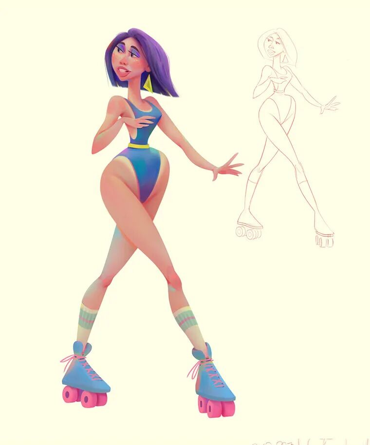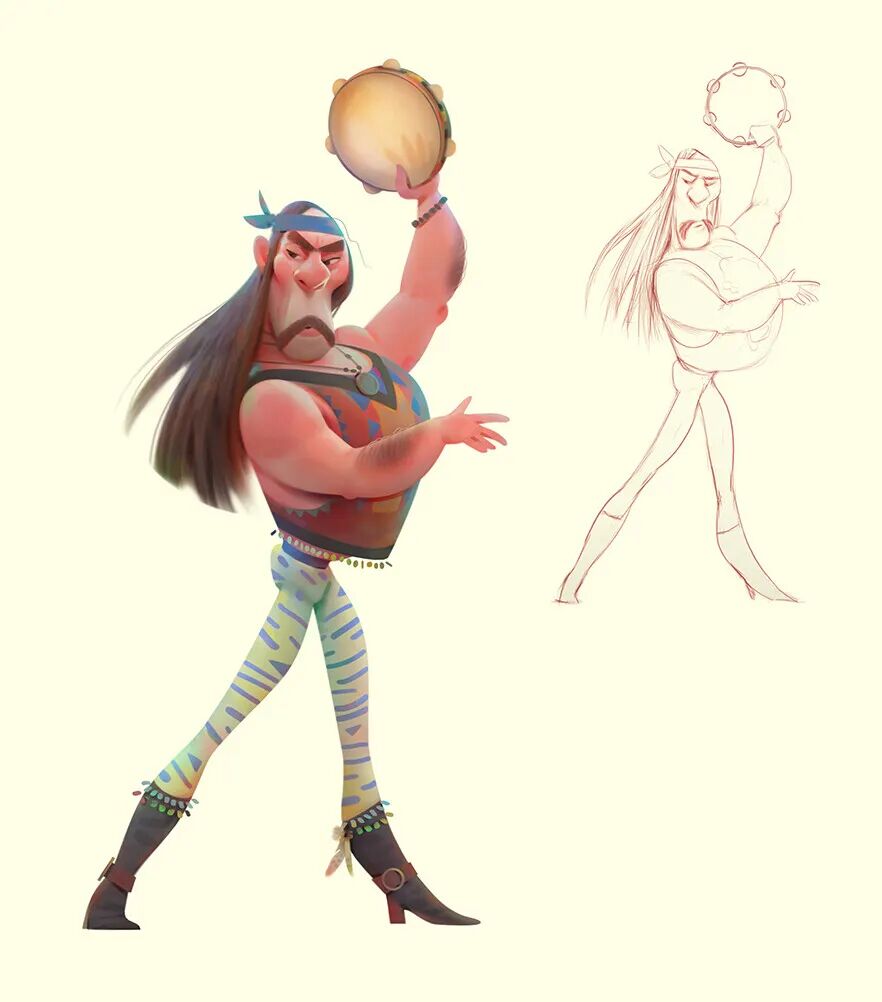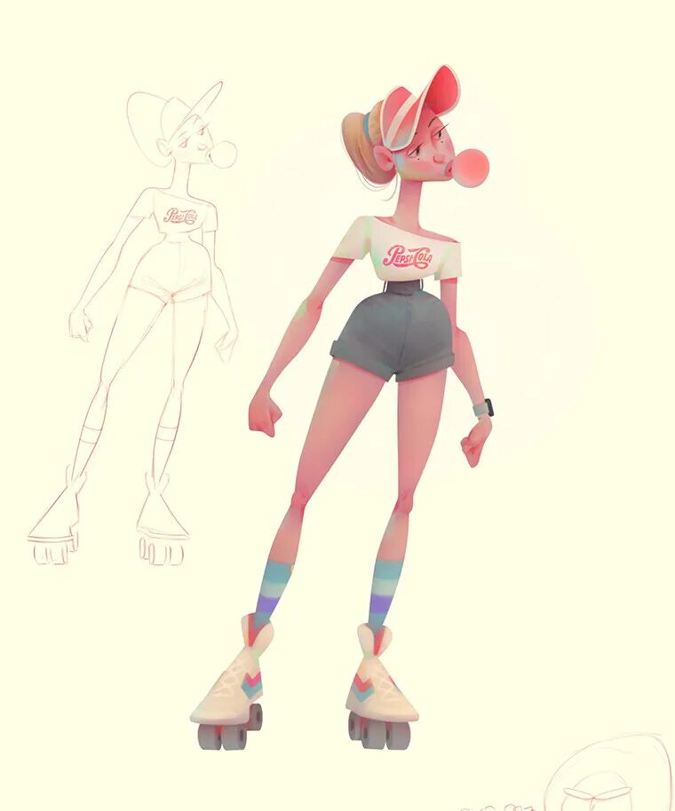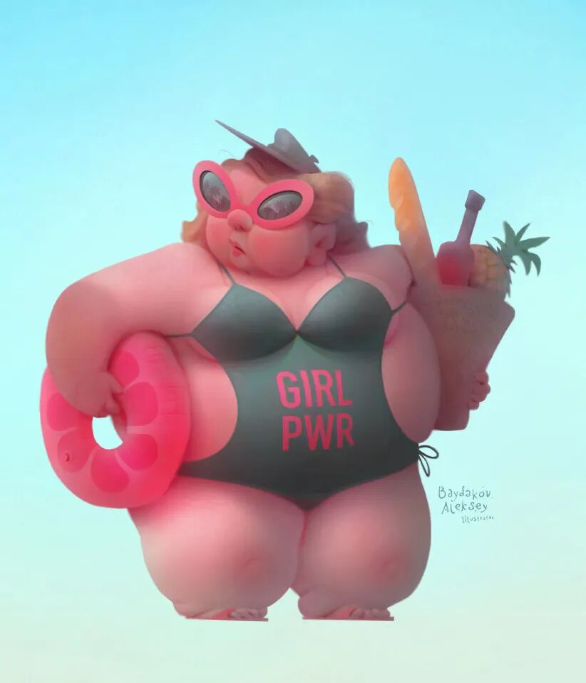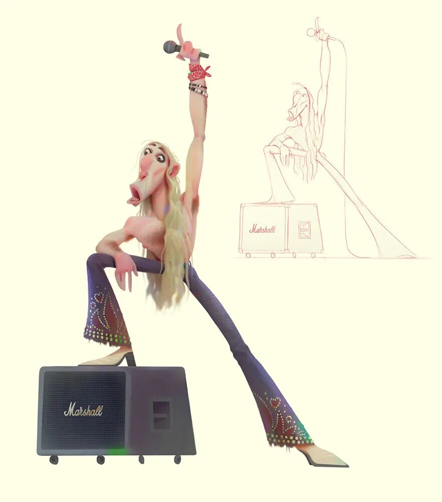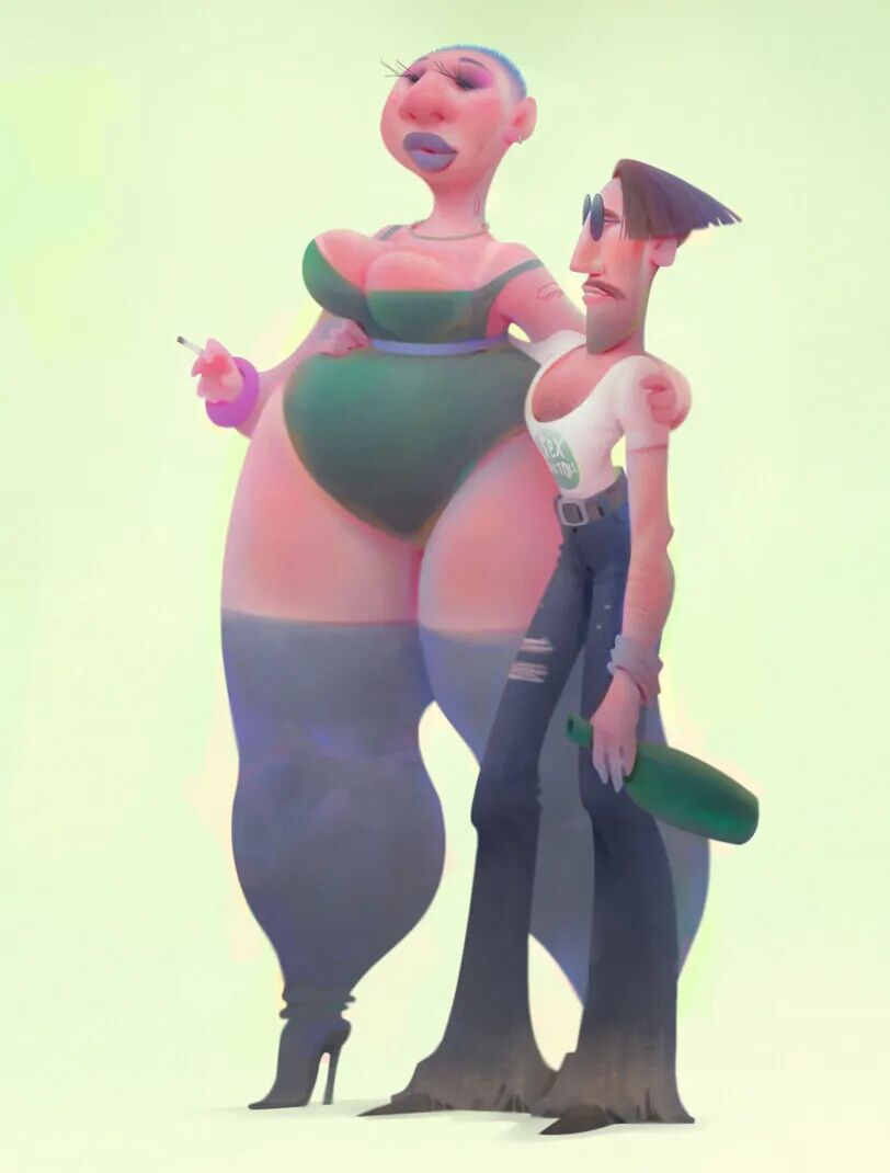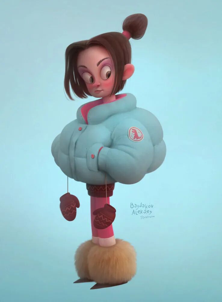 Aleksey Baydakov同样也以自己的独特风格创作了许多人类角色形象,局部夸张充满设计感,在色彩搭配上也非常亮眼,个性十足。