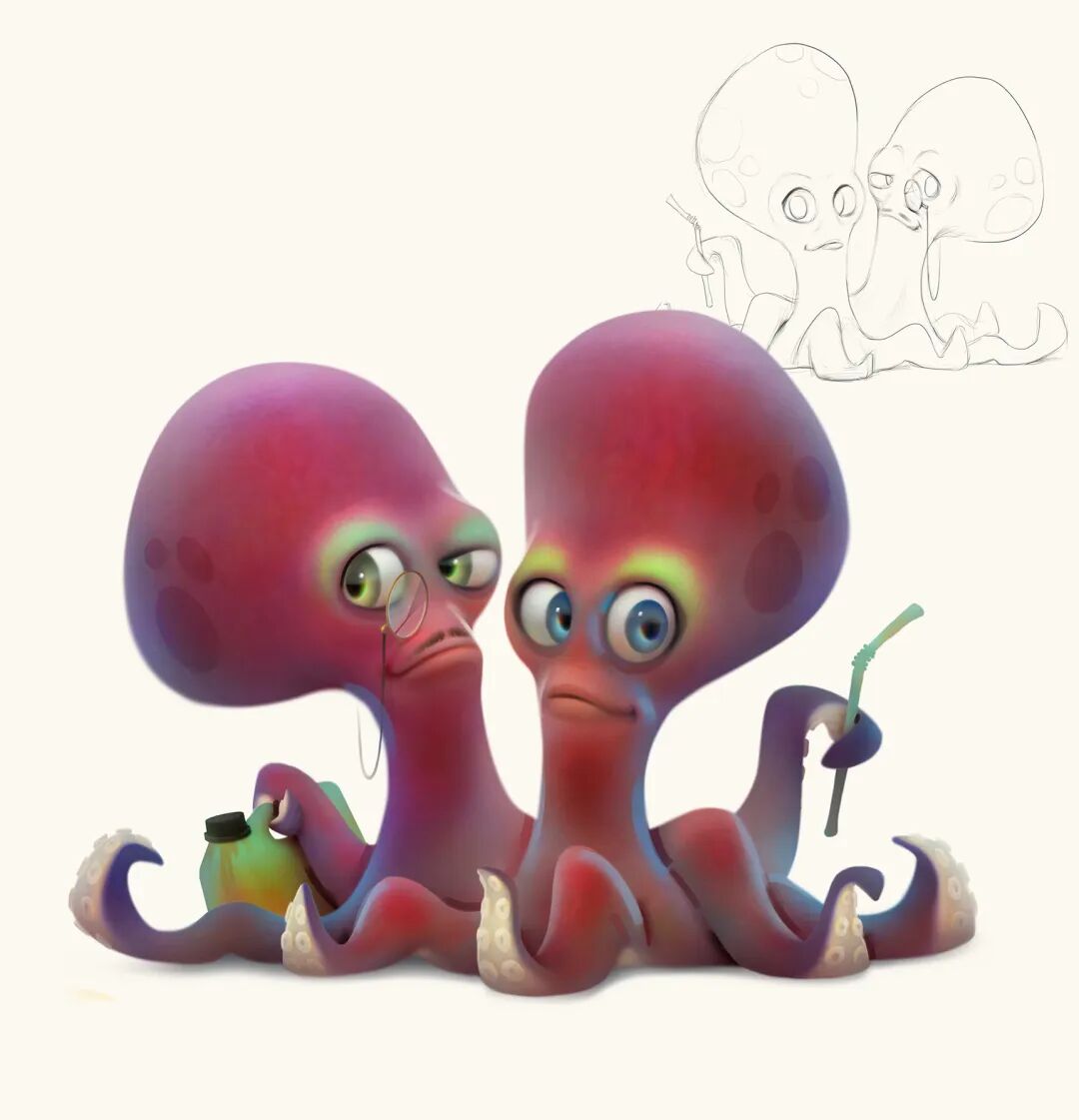 Aleksey Baydakov最擅长卡通漫画风格的角色设计,作品色彩鲜艳充满童趣,他将笔下动物的主要特征进行了变形夸张以及拟人化的创作,角色萌感十足质感细腻,非常生动有趣。