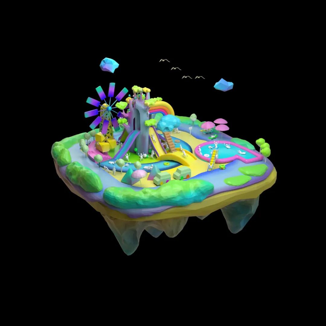 作品采用Lowpoly的呈现手法,以“爱和梦想”为关键词进行创意构思,在圆形飞岛上,人们快乐自由的放飞着“Q”形气球,描述出温馨有爱的生活场景,两个大大的奇瑞QQ logo,陪伴用户一起享受这个让爱放飞的周末。