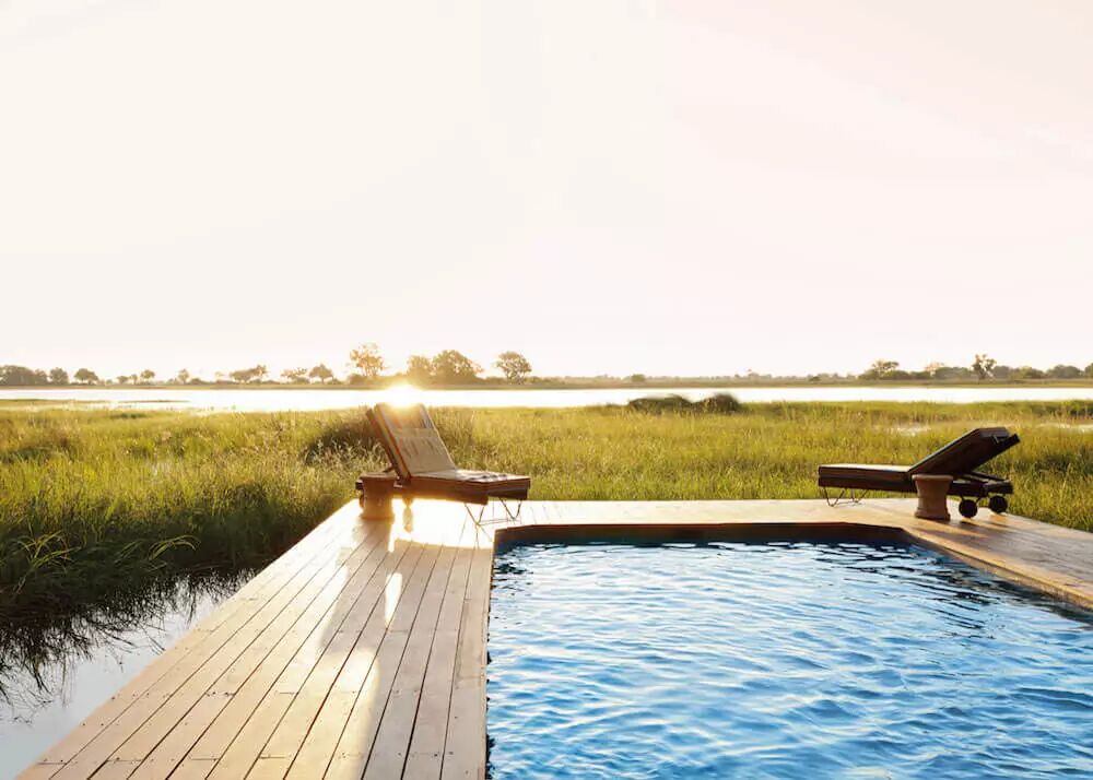 Pangolin Chobe Hotel酒店坐落在高原上,俯瞰Chobe River河和纳米比亚的卡普里维(Caprivi)洪泛平原,该平原延伸至远处的地平线。乔贝国家公园的边界距离几百米远,这意味着我们靠近大门,我们往往是通过大门进行游戏的第一辆车。我们的船停泊在酒店正下方的河上,快速转乘五分钟,然后直接进入公园。