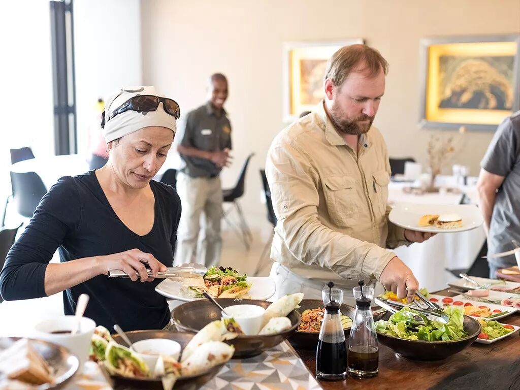 每天早上带上餐盒或早餐后出发,下午至傍晚安排越野车猎游,或者乘坐摄影船在河边拍摄水鸟以及象群、河马等野生动物。日落后回酒店晚餐。