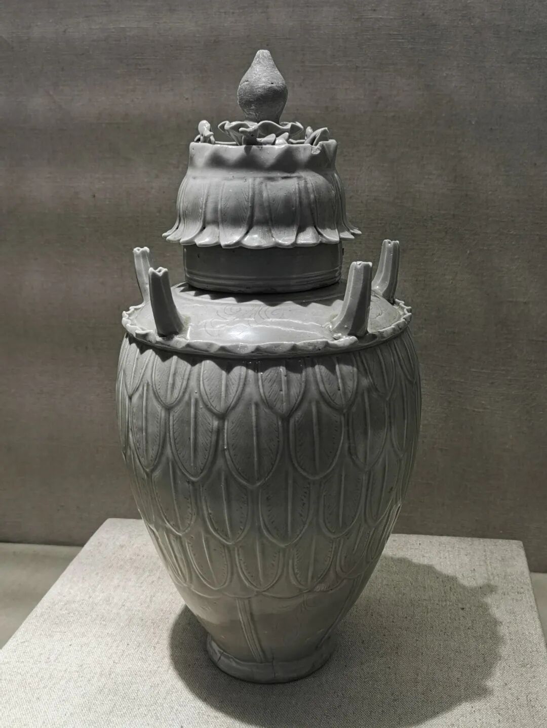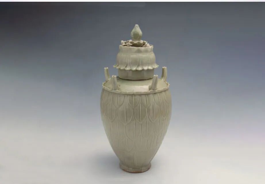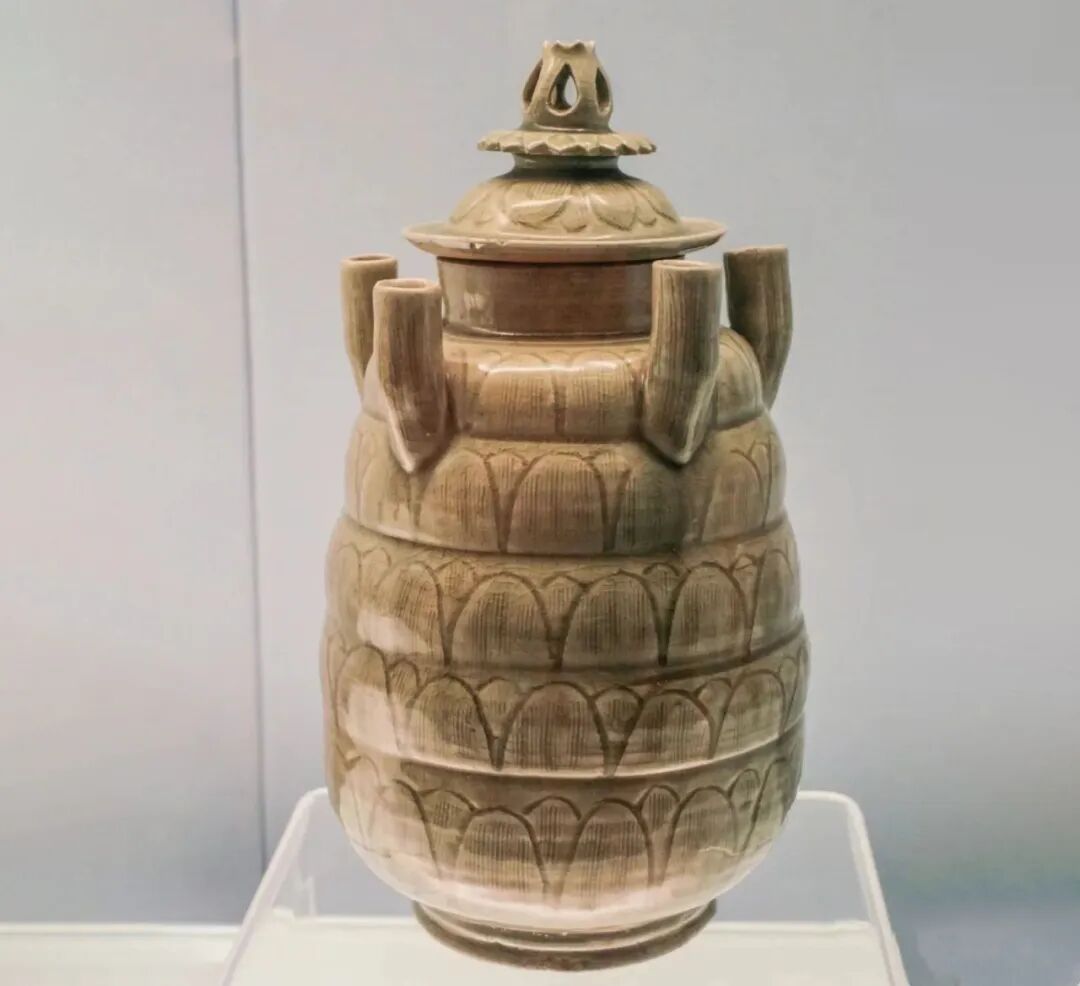 北宋 龙泉窑青釉刻花莲瓣纹五管盖罐