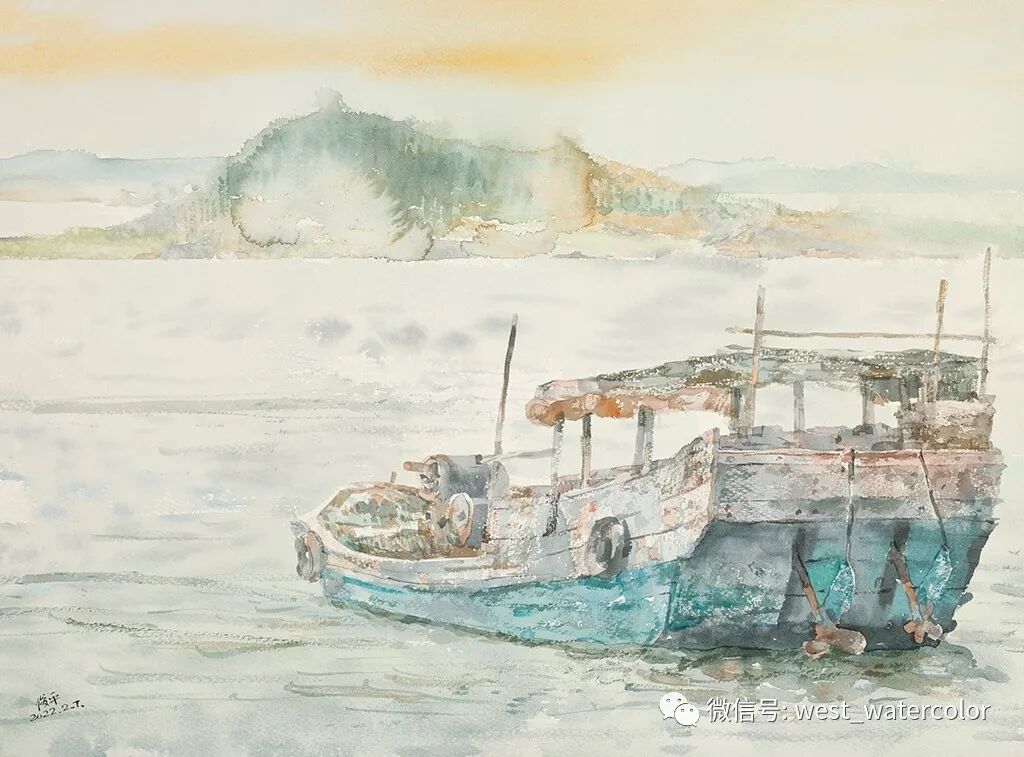 韦俊平《寂静的港湾》  54x75cm  2022年