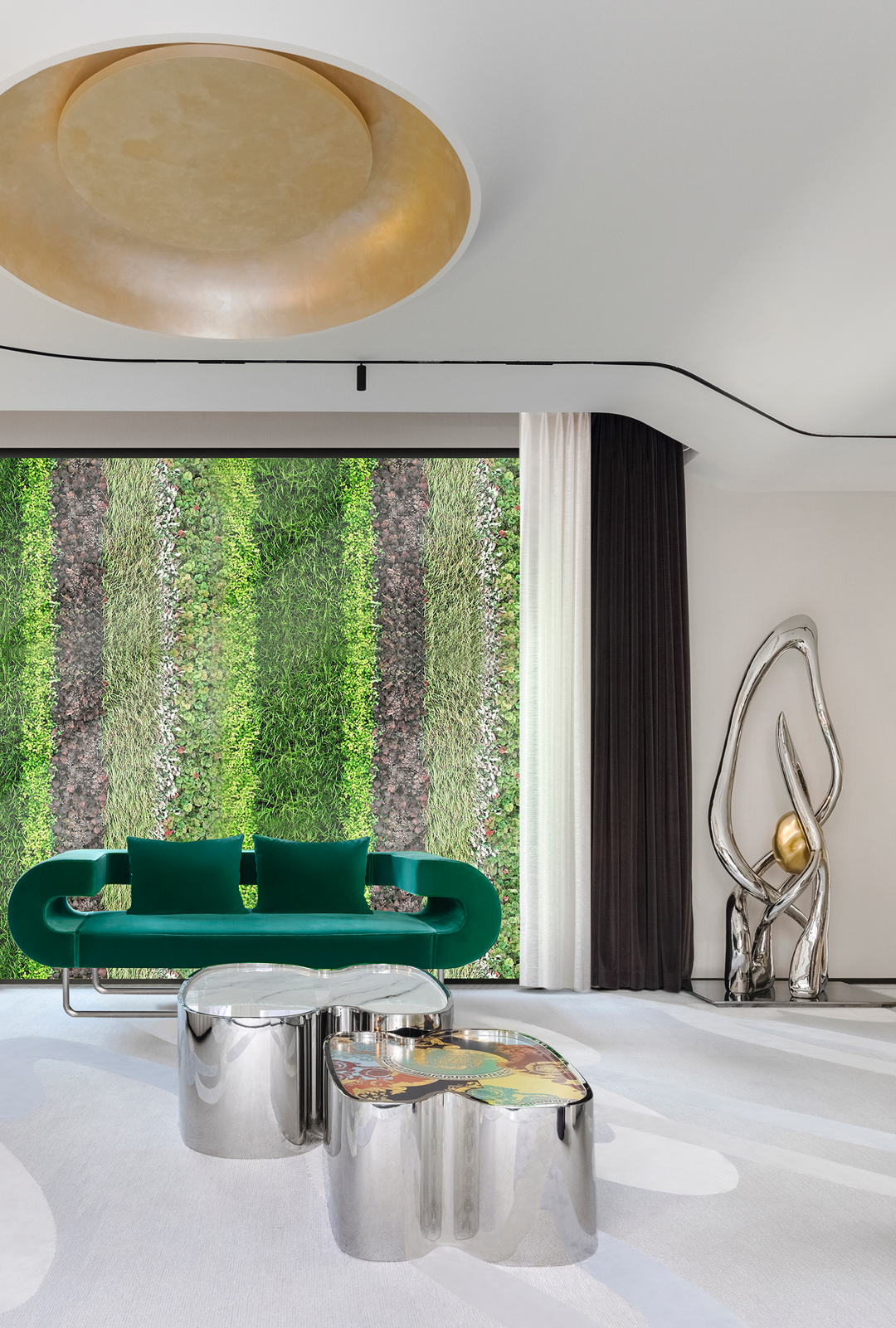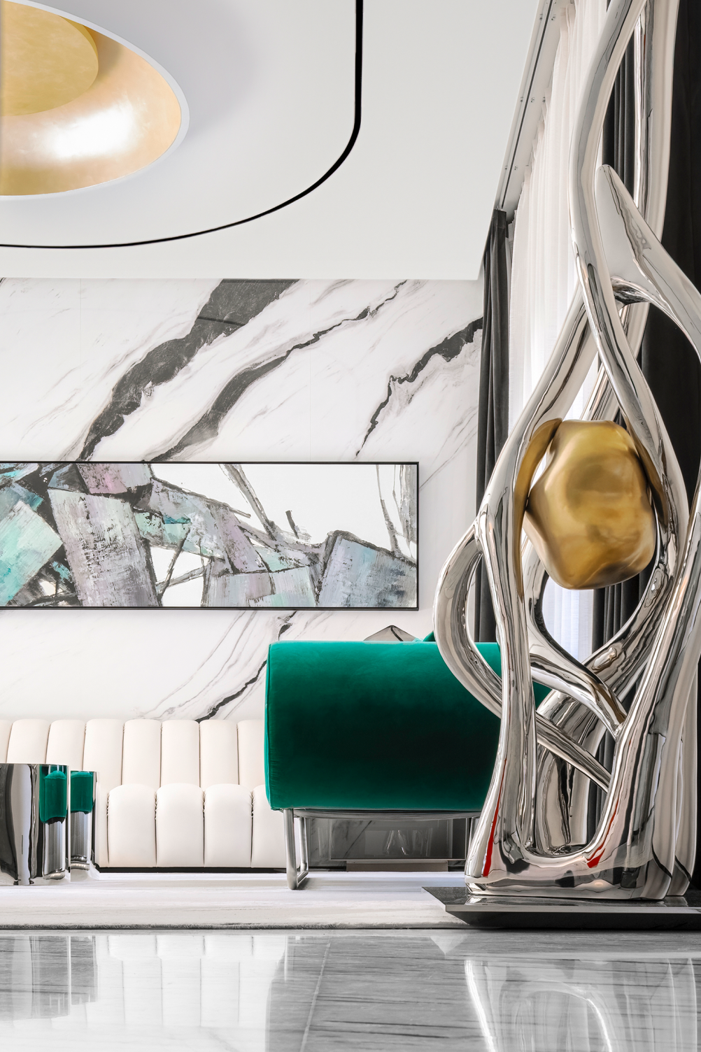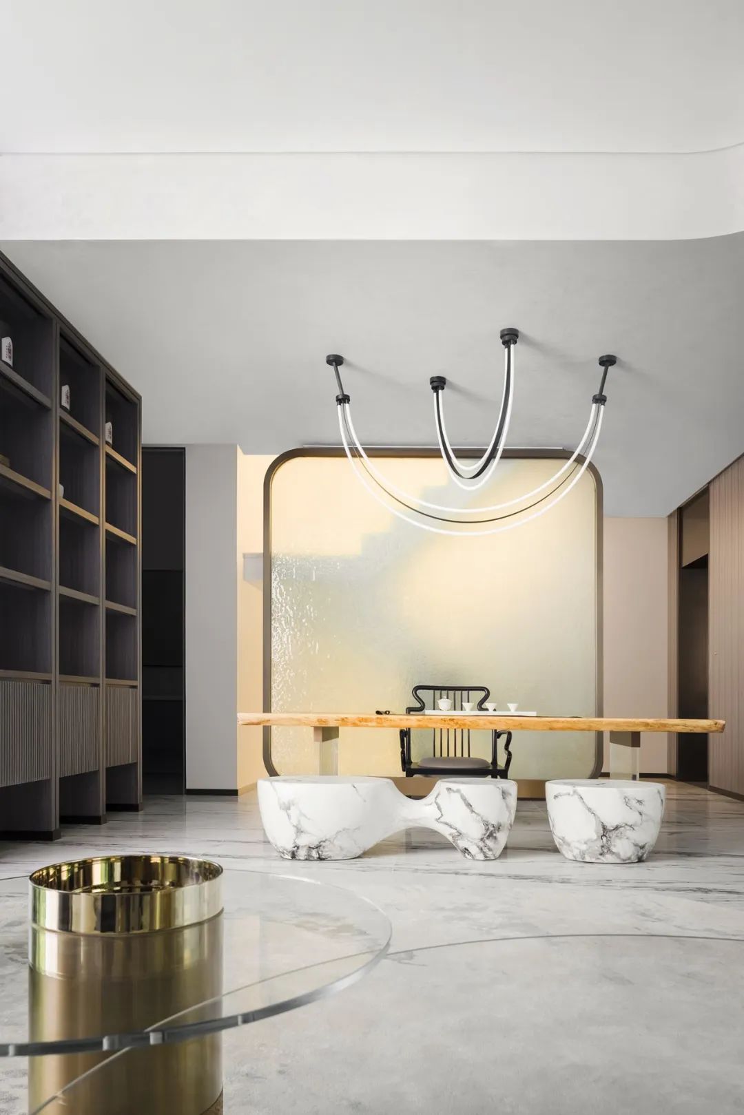 ☆《循环》是邱德光为项目专门创作的重要雕塑,它位于客厅,以类似莫比乌斯环的形态,试图讲述自然生生不息的规律,和历史与记忆的无常,既是视觉焦点,也是空间整体艺术的起点和落脚点。