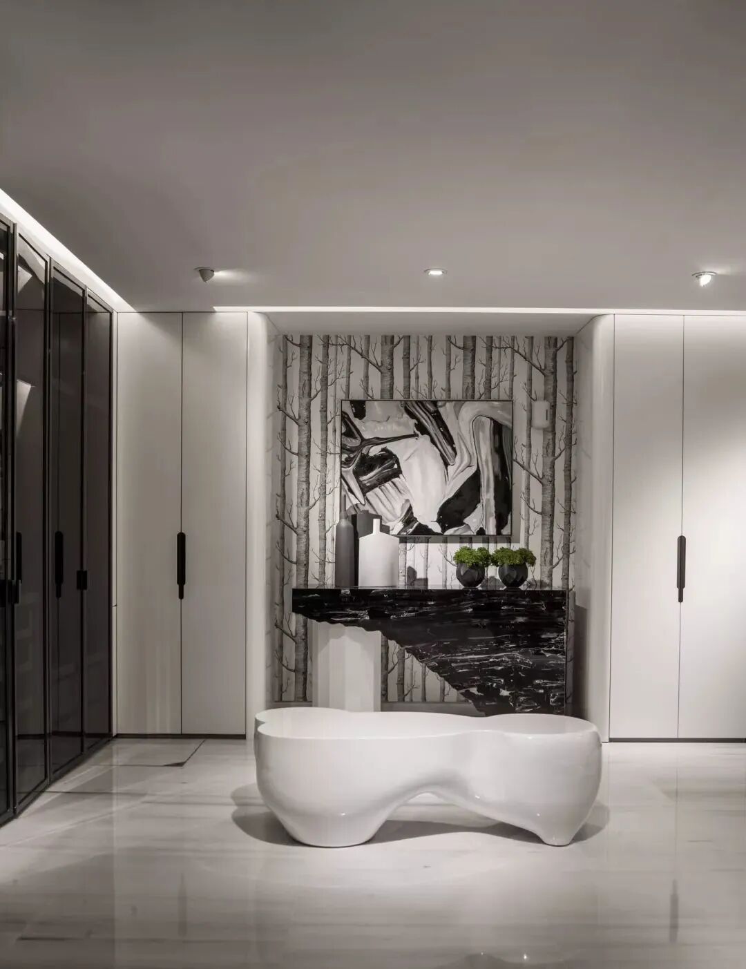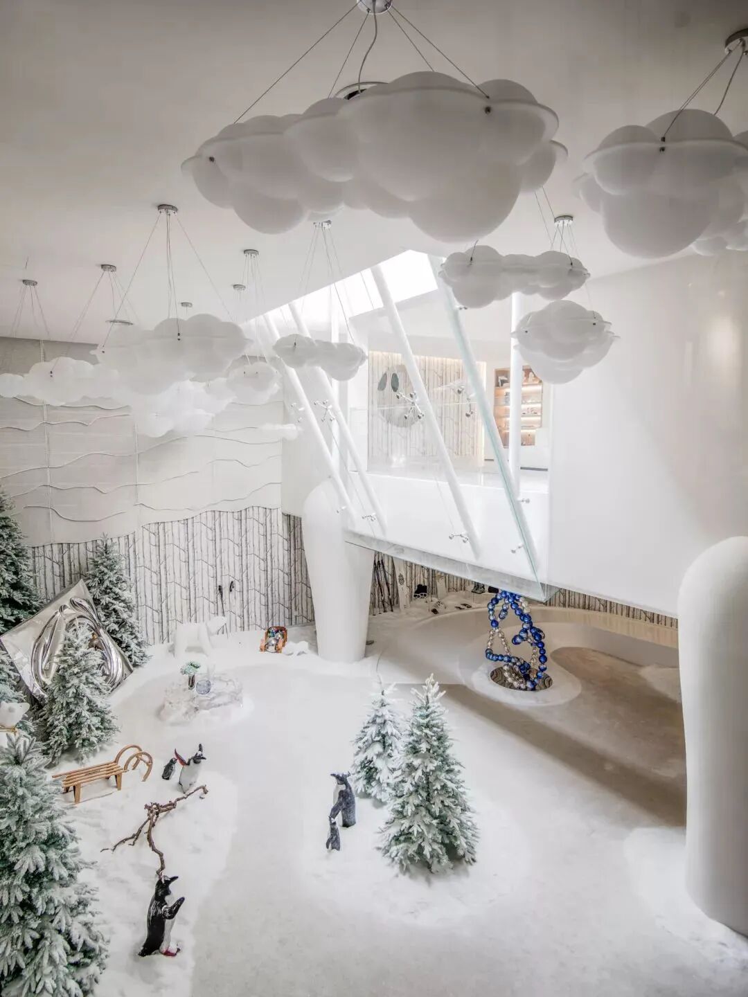 作品集2023-07-06 邱德光作品 | 857㎡北京首创远洋·禧瑞春秋南合院,把地下室打造成雪屋的魔法世界! 绿野仙踪石材作为客厅主背板,天然肌理和颜色与院子的盈盈绿意完美照应。 关于“云霞图幛子,山水画屏风”的东方诗文意境也在这儿被勾勒出轮廓。 白色主沙发轻柔地崎岖,柔和身形是对层峦叠嶂的一次温顺诠释。 墙面雕塑模仿一朵巨大的雪花,和白色空间相辅相成,而它也在为地下的“雪国”埋下第一次伏笔。 B1餐厨、院子 别墅具有开设天窗的条件,所以,引入光线就成了重中之重。 传统的平天窗带来的采光到达面很狭窄,所以邱德光规划在B1层的院子引入三角锥天窗,斜面开洞让天然光布满在地下空间。 至于“玻璃金字塔”的隐喻也让这个天窗具有了神秘性。 B1层的院子有种下沉式的沉浸感,天空便是无尽的空间挑高,竹林、植物、鲜花包围着木质餐桌。 黄昏时分,暖光会从地上或地下流泻到院子,家的质感让任何人为之动容。 推开院子中的玻璃推拉门,餐厨空间呈现在眼前。接连了1层的白色烤漆板,餐厨和客厅、早餐吧到达视觉上的高度统一。 以“形山”为名的餐椅是德光居的代表作,让人联想到天然界的山峦。 画作《掩藏之间》来自青年艺术家张恒丰,相同以天然绿意为主题,向外弥漫,越过画框的边际,渗透整个空间。 黑白两色的大理石吧台造型精约,即可以作为备餐台,也可以在Party时刻大显神通,灵活的功能赋予整个敞开餐厨极高利用率。 B2家庭起居室、茶馆、书房 光线从院子的金字塔顶落到B2层的茶馆空间,通过很多玻璃的反射,整个空间充溢跃动感,光线无所不在,戏曲感不断加重。 不管春夏秋冬,在家庭起居空间始终可以享受到长时刻的直射或漫射光。 起居室高一层半,纵向视野舒适。 曲线仍然是这儿的重要一环,天花叠涩,地面及墙面曲线在空间里天然流淌。 B3游戏空间、车库@7月的雪 空间魔幻现实主义 记住一个空间只需要一眼,而如果这一眼你看到了一场夏天的雪,想必再也难忘。 刚刚过去的夏天,邱德光规划将这场7月的雪,搬到了南合院的地下三层。 撇开故事性,为了让雪的感触最大化,滑雪运动成为灵感之源。 从车库进入,大面积落地窗后边便是隐约透出的“雪国”。 地下玄关相同以白色为主基调,艺术和雕塑为装饰主体,接连楼上的墙纸以外,坐凳的天然山石形状也在提醒你这是没有跳脱全体的魔法世界。 整个游戏空间以滑雪为主题,被白雪皑皑的森林想象完整铺陈。 修建中的结构柱为了投合空间的全体气氛被包裹成鸡腿柱,仿佛接连落了几夜大雪。 Disco球通过光线反射构成无数点状光斑分布在空间遍地,随着时刻的变幻在整个空间游走追逐,在魔法世界里,光也有自己的魂灵和故事。 2F卧室、衣帽间、卫浴 项目名称:北京首创远洋禧瑞春秋南合院 项目地址:北京 项目面积:857㎡ 规划师:邱德光、刘家麟、陈惠君 参与人员:廖珮晶、陆钰雯、夏梦、武子浩、亢思琪 项目负责:李元东 拍摄:Boris Shiu、柴利增 主要资料: 米白色烤漆、橡木皮染灰、亮面加利木皮、强化玻璃、灰镜、镀钛金属、绿野仙踪石材、雪花白石材、人造石、穿孔铝板喷漆等。 本文来自微信公众号“亚太室内设计”(ID:ytsnsj)。大作社经授权转载,该文观点仅代表作者本人,大作社平台仅提供信息存储空间服务。 TAGS: 室内设计家居空间设计空间设计 相关文章Kleoniki Andr…这是大王Day.281获奖作品《2020最佳图书…精选头像|搞怪来袭!安东尼奥·布埃诺 作品配色清新梦幻的场景插画,充…美国Jennifer Mc…【小鹏设计】设计小改/动力…【首发】地点空间丨打破空间…谢商家不坑之恩!只骗有钱人…