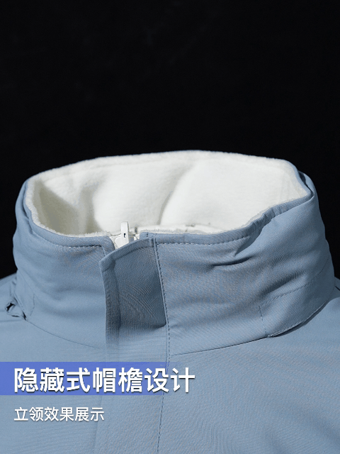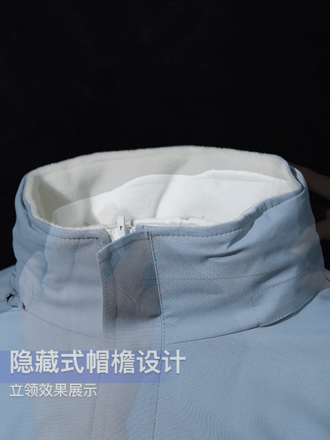 4、帽体采用隐藏设计,随时切换穿衣风格;两面隐形口袋人性化设计,安全系数高;