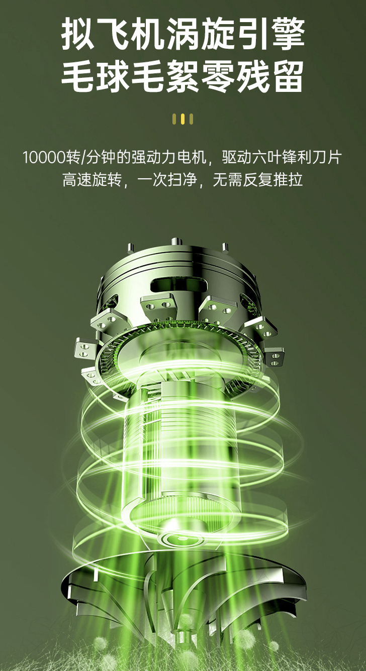 比之普通剃毛机需要来回打圈剔除,这款配置9W大功率,1000转/分钟的强劲速度,高速旋转之下,一次就能扫净毛球,使用感受绝绝子!