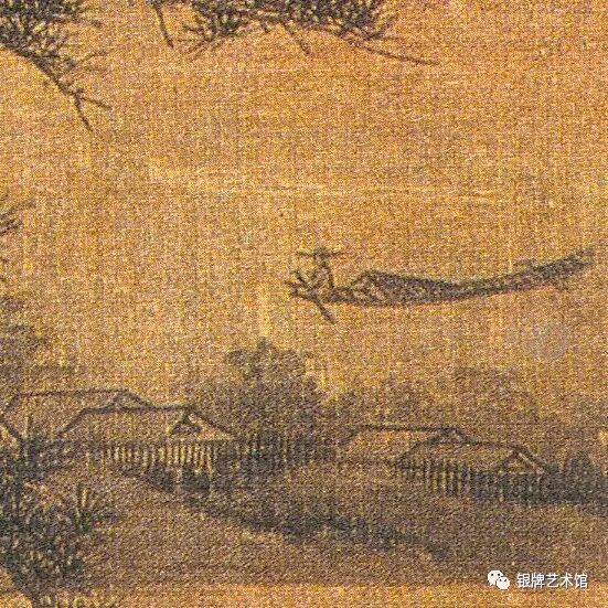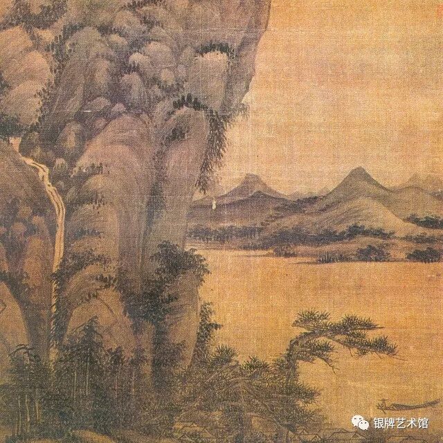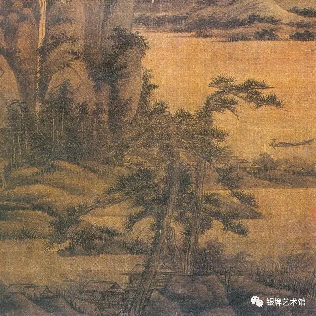 《秋江渔隐图》画高山平湖, 一叶轻舟随波荡漾。