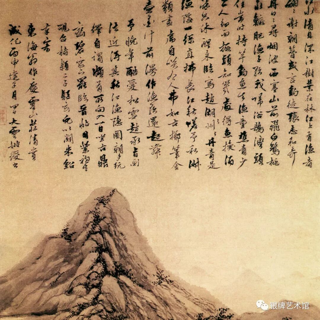 在表现技法和意趣上,画家继承了元吴镇的笔墨传统,风格粗放老辣,富于率达朴茂的情韵。