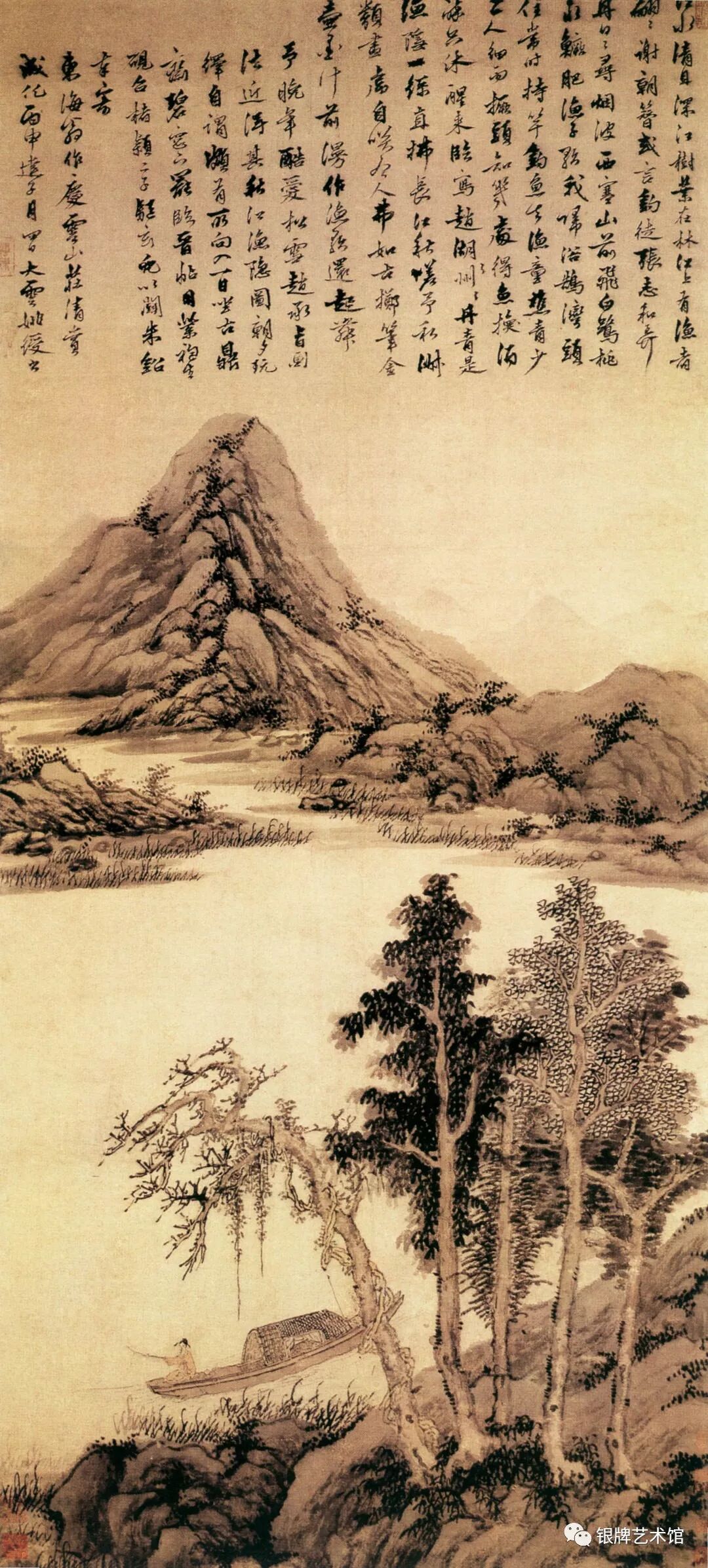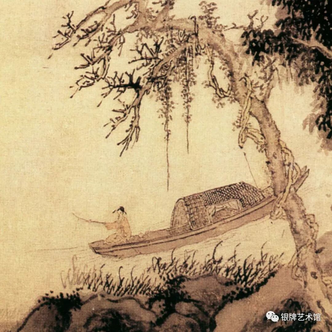 《秋山渔隐图》画面所描绘的是秋林远岫,湖中钓舟。