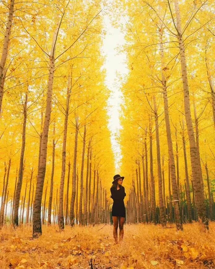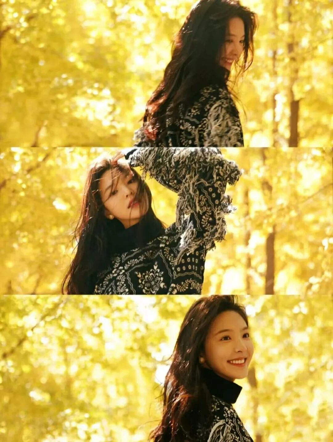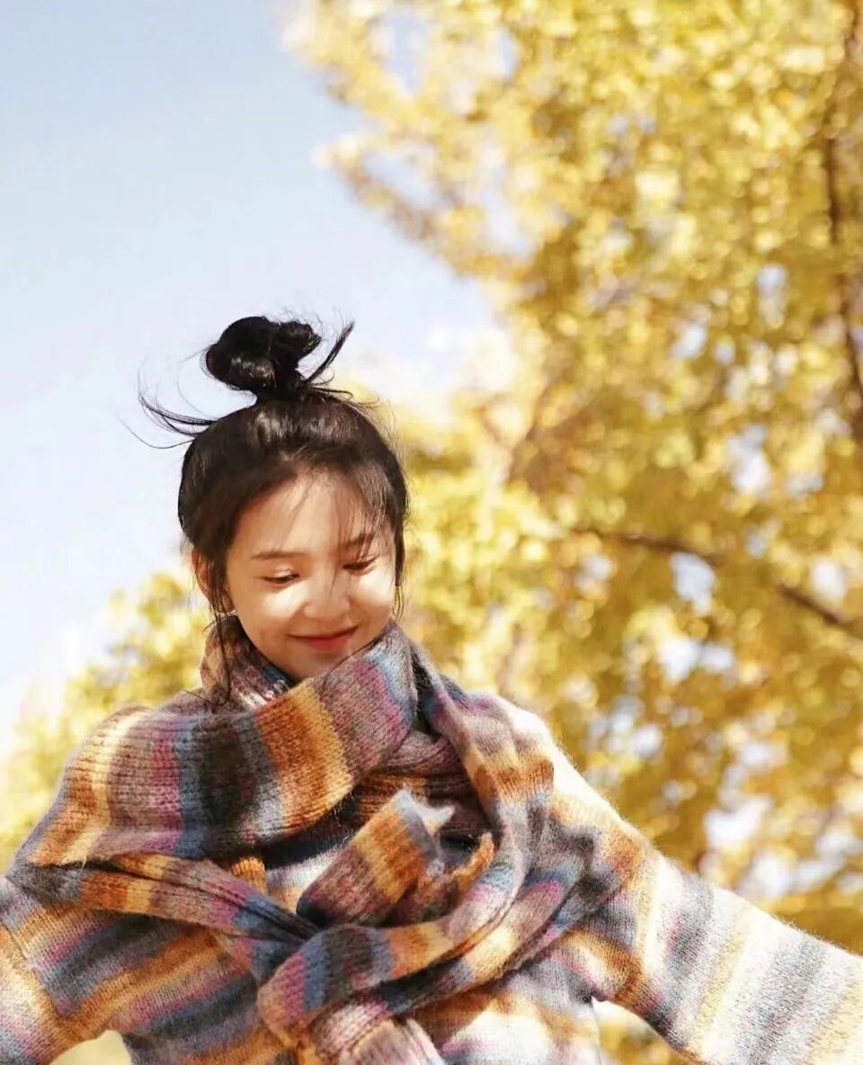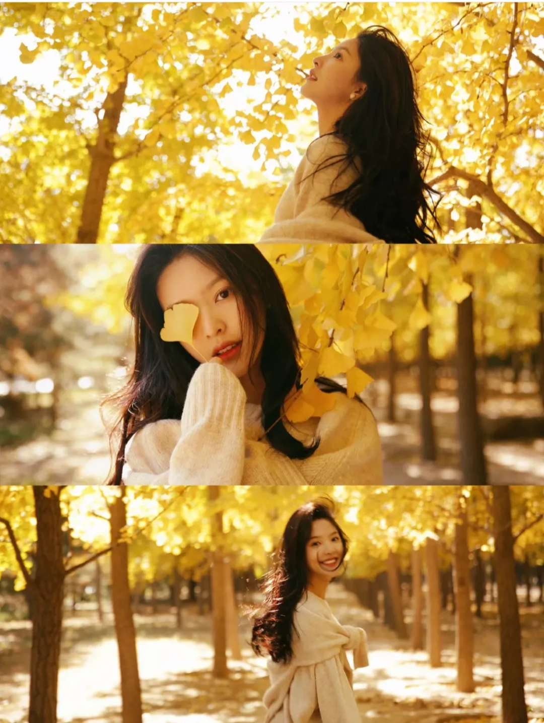 进入秋天,相信全国各地都有很多赏秋的地方,景区、网红打卡地、公园里,哪怕是小区里都有很多好看的场景,重点留意色彩好看的树木群。我们可以找个相对简洁的场景,利用人像模式,虚化背景,让背景更纯净。