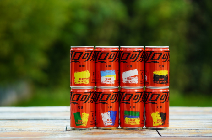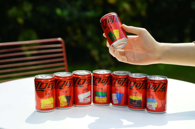 罐身依旧采用球队主色+各国语言的“加油”组合