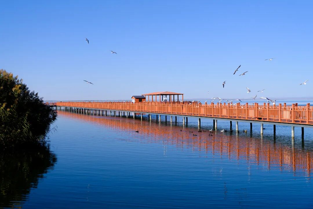乌梁素海,是由于黄河改道形成的河迹湖,也是全球荒漠半荒漠地区极为少见的大型草原湖泊,与鄱阳湖、洞庭湖等并称中国八大淡水湖,也是全球北纬41度线上的著名湿地。