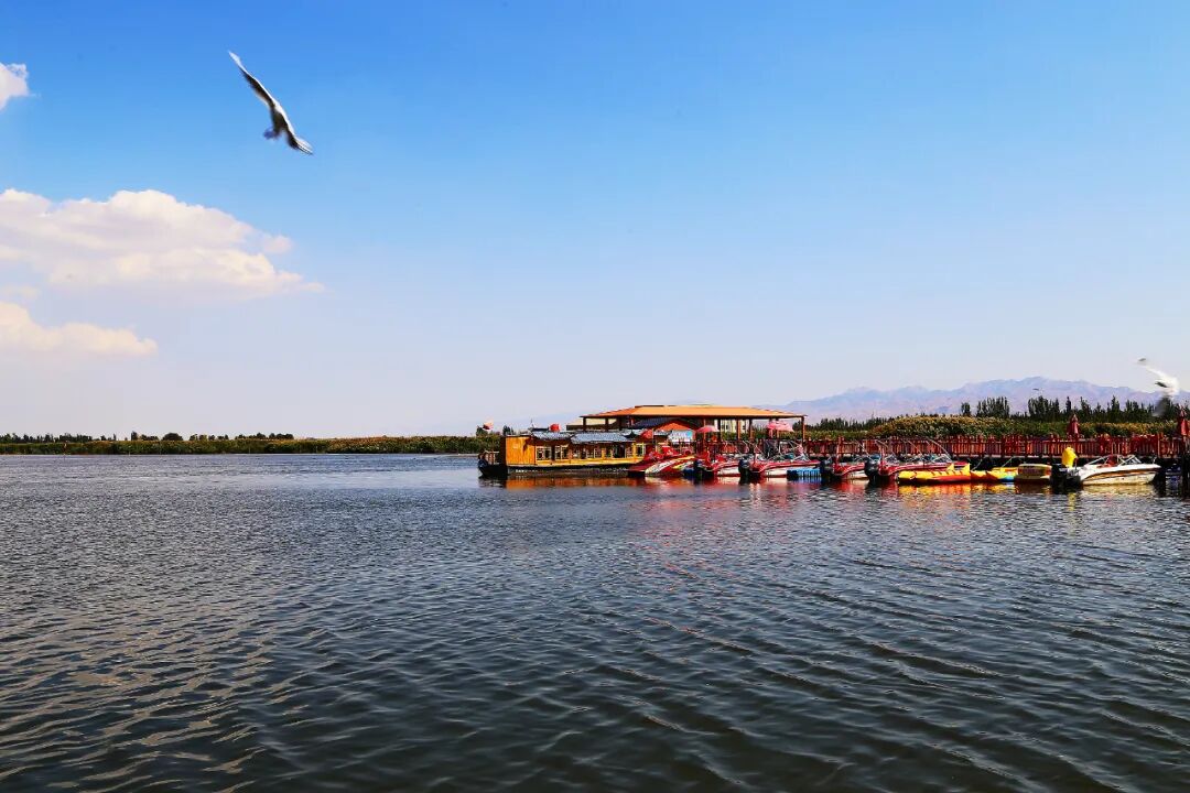 这里的秋天,也别有一番意境。深秋10月,水中的芦苇、岸边的草地逐渐开始枯黄,而湖水依旧蔚蓝,珍稀的白天鹅、黄白鸭、麻鸭等成群队栖息于此,沙峰、湖水相映成趣,不啻人间仙境。