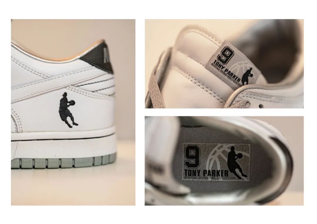 在托尼·帕克还属于 Nike 旗下的签约球员时,虽然 Nike 没有为他推出正式的签名鞋,但市售了一些带有个人别注的 NSW 鞋款,如 Dunk、Air Force 1,这双于2004年发售的 Dunk Low 便是其中之一。