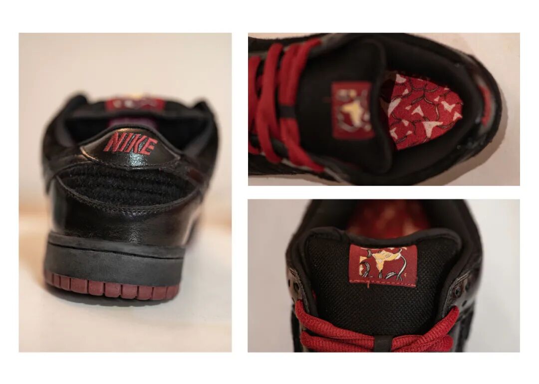 整双鞋选用了在当年并不常见的黑灰色单宁材质,在材质上与2002年发售的 Dunk SB Low "Reese Forbes" 十分相似,但整体颜色上还是存在着明显区别。