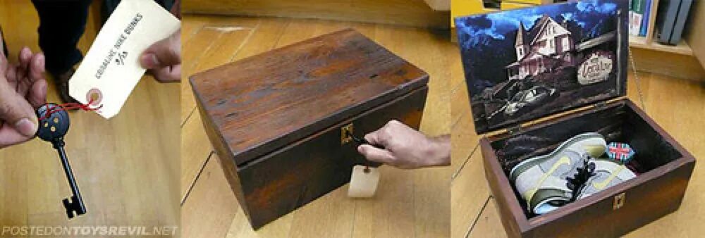 此外,这双鞋还有一个木盒版本,同样没有对外发售,而是赠予给了全球排名前15的球鞋店铺,这也是规格最高的一个版本。