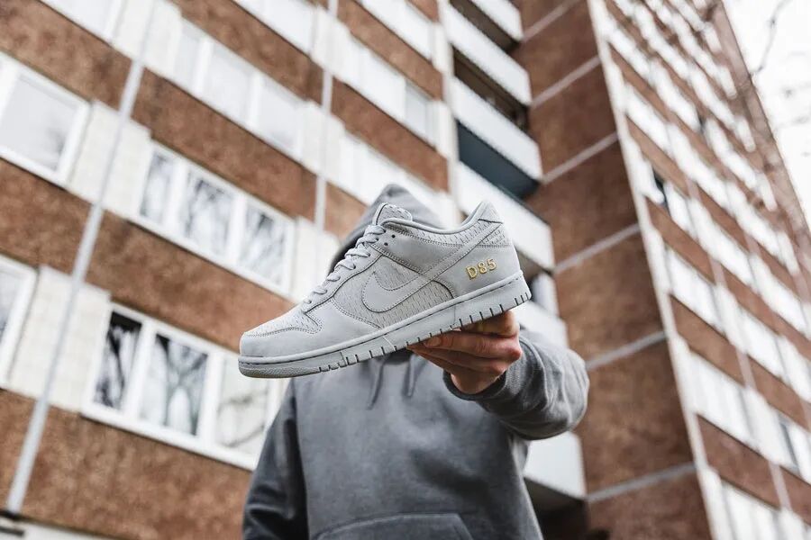 但是,Plattenbau 仍然是德国历史中的重要元素,如今仍有许多德国的年轻人十分接纳这些建筑,并将它视为城市的一部分。作为极简主义与功能美学的代表,Plattenbau 所呈现的灰色对于德国人来说就像一块空白的画布,人们可以在上面绘制自己的梦想,挥洒自己的灵感。而 Overkill 在与 Nike 的合作中选用这一主题应用在这双 Dunk Low 也是向这种地标性建筑表示致敬。