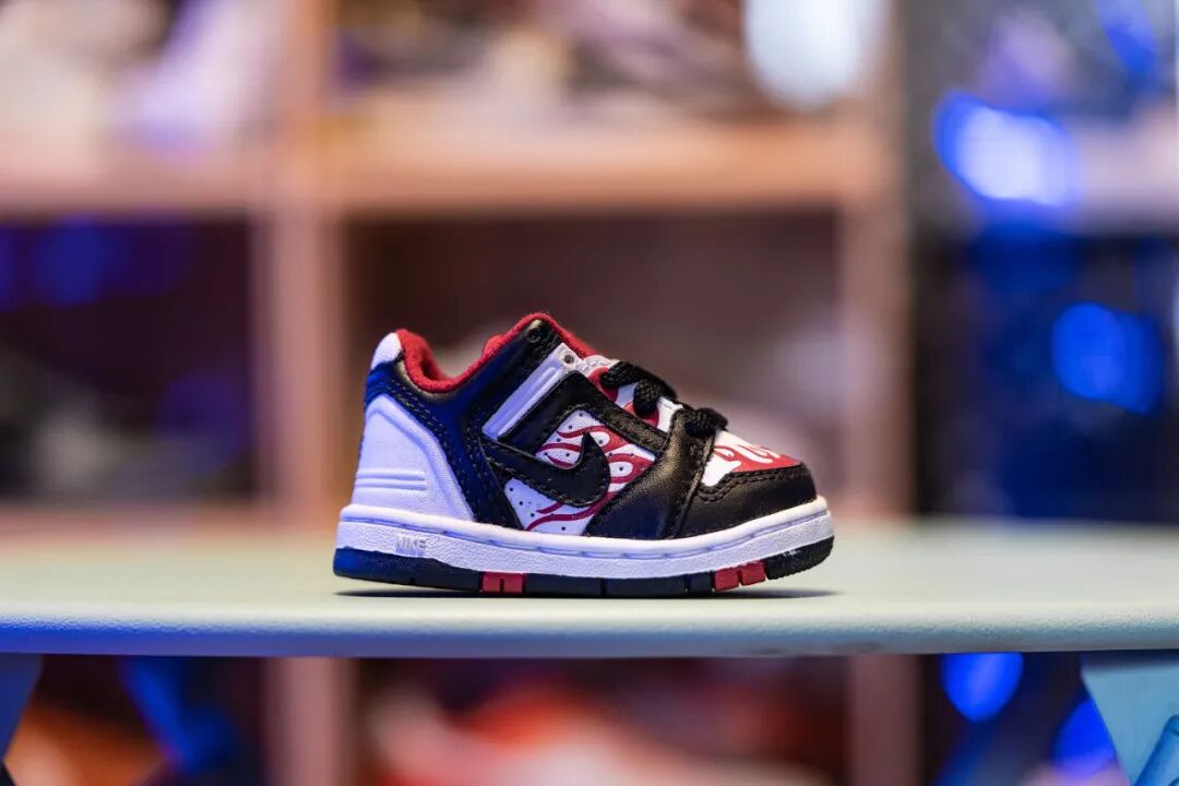 “因为我女儿的缘故,我最初会给她买一些脚感舒服或好看的童鞋穿着,但仅限于 YEEZY 或者 Air Jordan 的一些新款式。但随着对球鞋更深一步的喜爱与研究,我发现有些老款的童鞋更好看,会给人眼前一亮的感觉。现在或许收藏一些老款的鞋已不是什么新鲜事,比如 AF1,Dunk 等,但我发现这些配色竟然还有童款时,我便深陷于这种寻找的乐趣中,并能收获成就感。说真的,这些童款真的会拓宽你对球鞋世界的认知,有些童鞋寻找的难度更大,相关的资料也很难寻找,而且价格也十分不菲。“