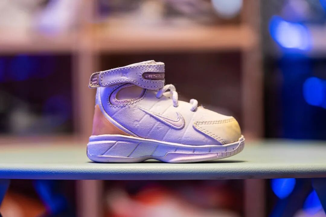这款 LeBron James 高中配色的成人尺码很多人都见过甚至拥有,那么童版软底的呢?并且这还是一双 Sample......