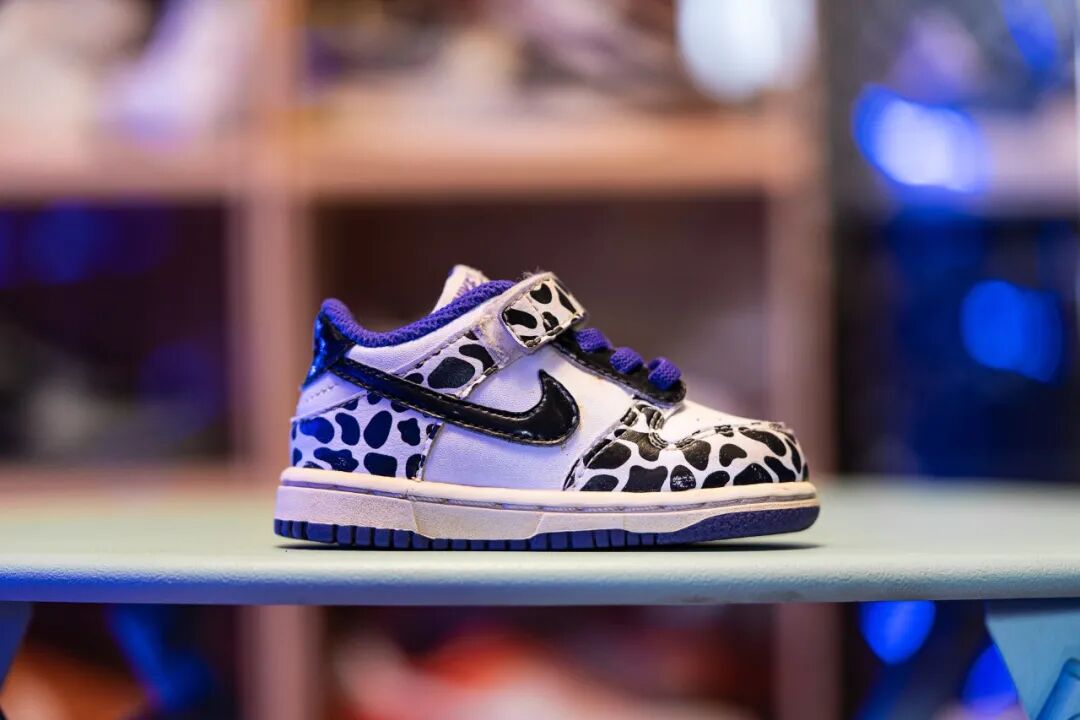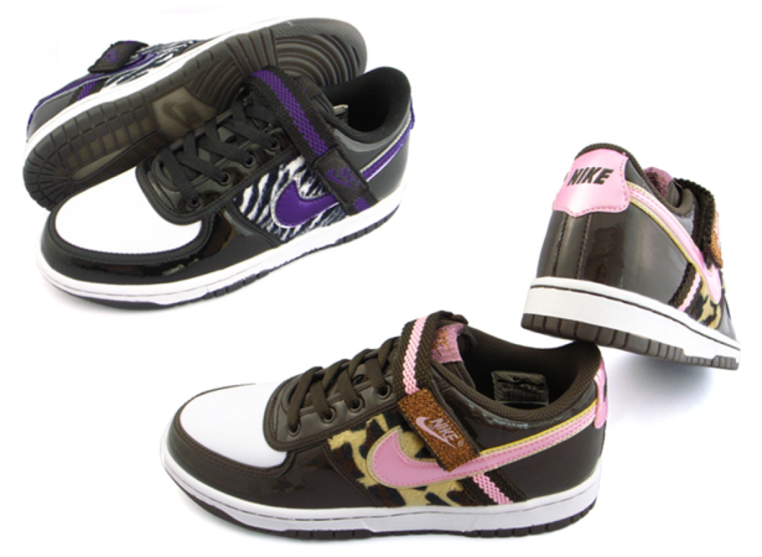 在 Nike 许多非成人鞋款中,考虑到品牌要迎合孩童的审美,我们能看到更多诙谐的动物图案,当然也不限于"十二生肖"主题,大众对于这些配色的认知度更低并且它们的寻找难度也很大。我们从湿远的收藏中也挑出了几双作为典型:如蛇年的童版 Blazer Low,或是 "Dalmatian"(达尔玛西亚狗,俗称斑点狗)配色的 Dunk Low (2009) 以及 Cortez,2010年推出的虎年款 Dunk Low,鼠年款的 Vandal Low,搭载斑马纹的 Baby Force 与 Vandal Low (属于2010 "Animal Pack"),以及套装里的另一双豹纹款。