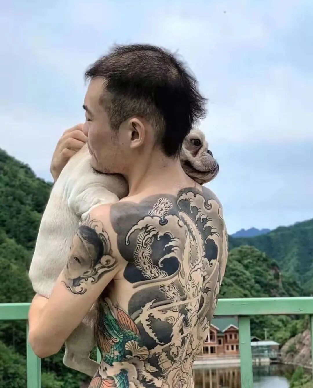 如果我们"以貌取人"的话,或许很难将同样热衷于纹身文化的他与"童鞋"建立起紧密的联系。但这当然不是我们对纹身存在偏见,只是初识湿远的我们会觉得这二者的结合十分微妙,也正是这种反差塑造了一种"铁汉柔情"的形象。
