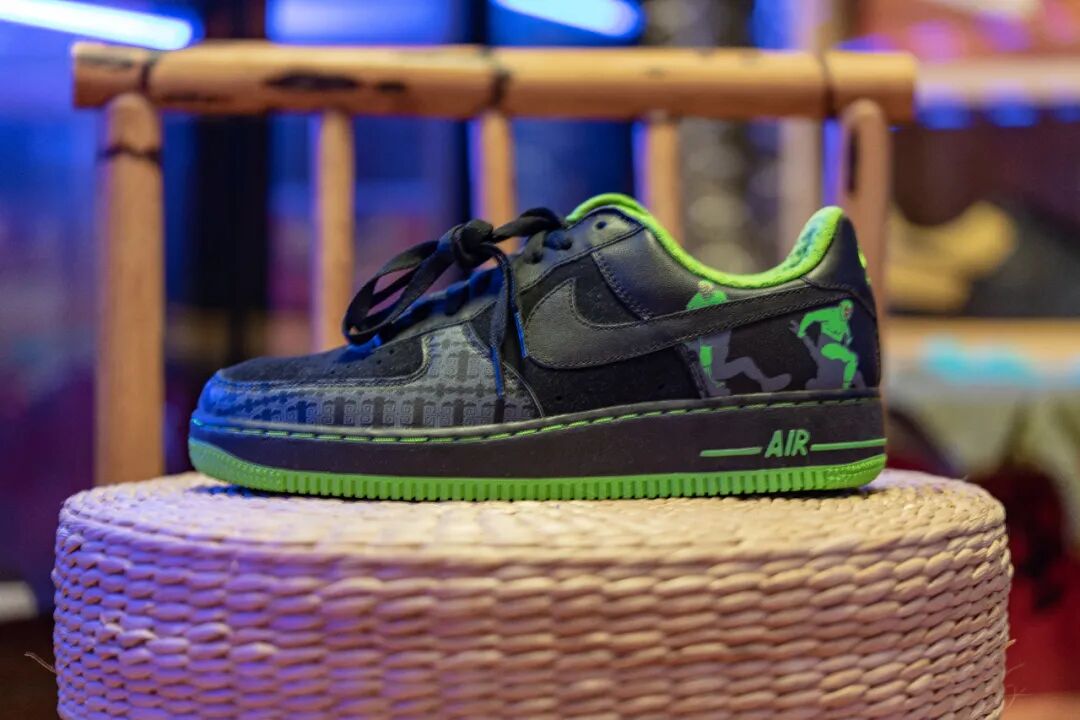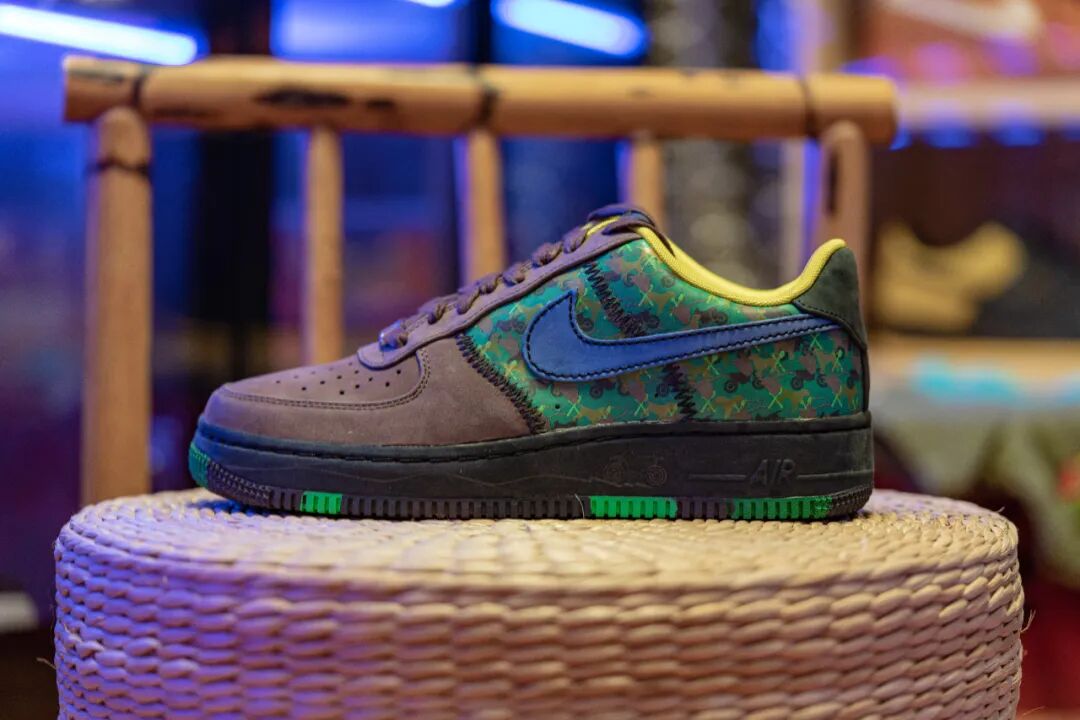 还没等我们决定好从哪里开始拍摄,湿远就迫不及待地想要分享他最新的收获 —— One World 企划中 KRINK x Air Force 1 的亲友版本。这可是让我们大吃一惊,这双存世可能不到十双的亲友限定款,曾经只存在于图片中,而如今就摆在我们面前。