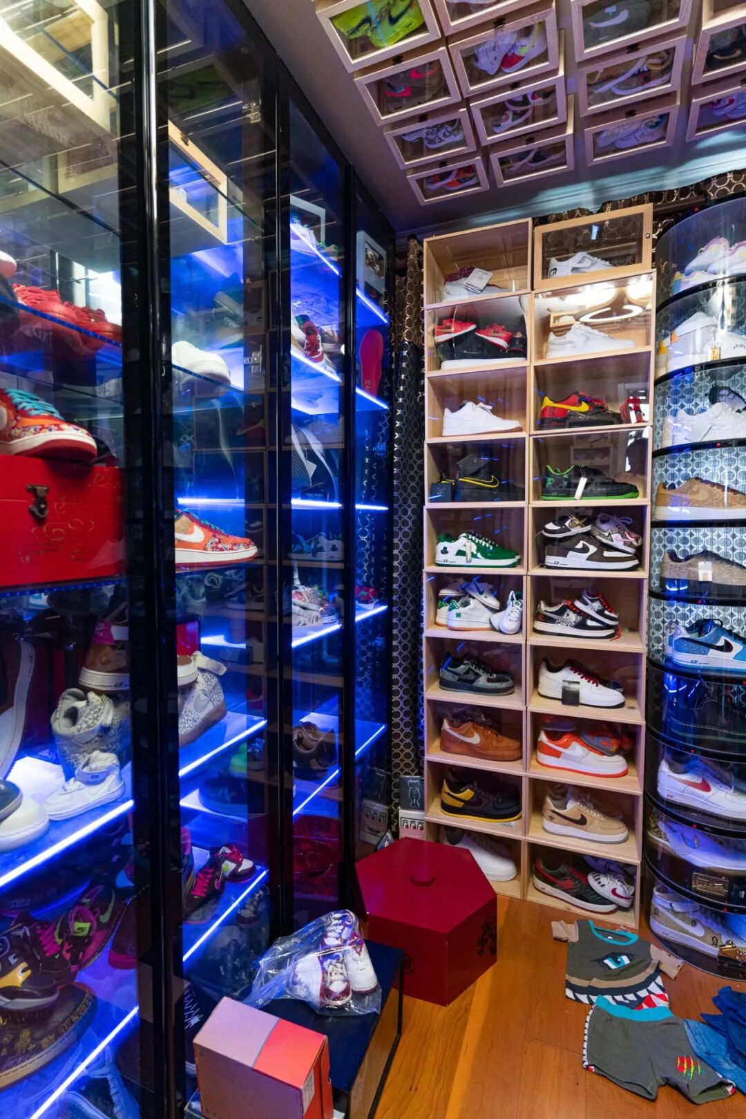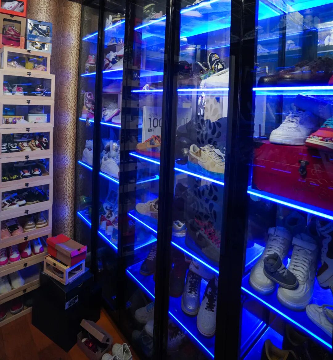 我们在之前也提到过,在非童鞋款的收藏中,湿远将他的热爱全部献给了 AF1。在他前几年的球鞋收藏生涯中,他也曾触及过其他"限量鞋款",如 Nike Air Yeezy 以及 Jordan Brand 系列的产品,但为了进一步扩大自己的 AF1 收藏,他最终还是选择将它们卖掉。其实笔者在参观湿远的球鞋陈列室的时候,也特意观察了一下会不会存在 AF1 以外的鞋款,然而目光所及之处体现的全是他的"专一"。