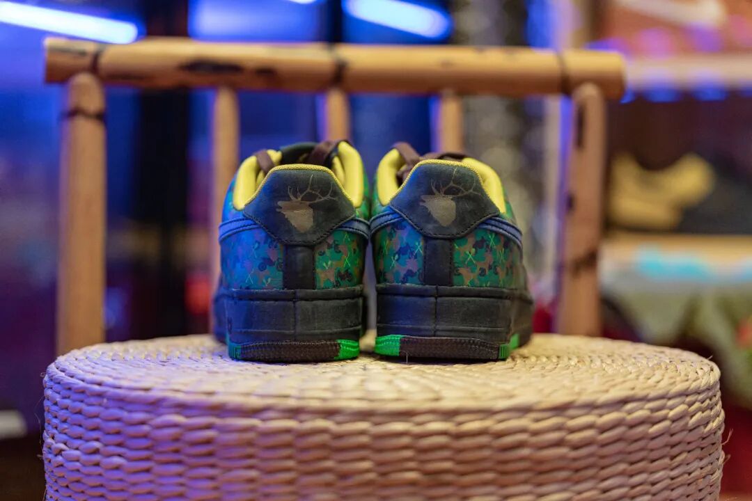 而他对户外环境的喜爱则通过狗、麋鹿、山地自行车以及整体较为深沉的配色来体现。材质工艺上也是十分考究,称得上慈善款 AF1 中的佳作。