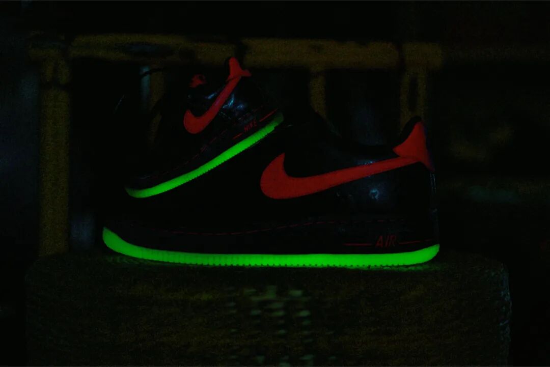 2008 年,植根于纽约的涂鸦艺术创意品牌 KRINK 受 Nike 邀请,为 One World 企划联手打造了这双最为"闪耀"的 AF1 —— 覆盖 3M 反光材质的鞋面搭配 KRINK 标志性的 "滴画" 设计,使得整双鞋看起来如同刚被涂鸦颜料滴洒一般充满个性。