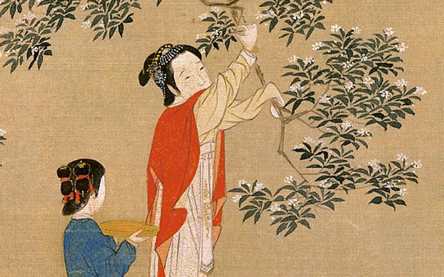 中国古人一向喜欢佩香,香味不俗的桂花,自然也被装入香囊,制成香牌、香珠,佩带在身上既是饰品,也能熏染着衣服,让人身上芬芳习习。