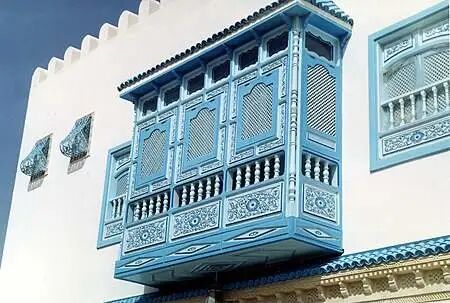 Mashrabiya是一种具有阿拉伯特色的“百叶窗”。这是一种固定在建筑物外侧的悬窗,它经常被设计成细密的几何图案,这既能保证住户的隐私需求,又能避免阳光直射来达到降温的效果。