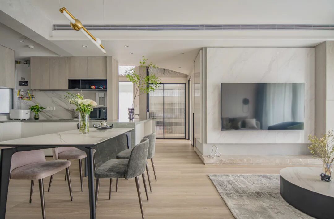 整体空间克制用料、配色,更注重表达居住者素心清简的生活态度和艺术审美。用最朴实、纯粹、轻盈的材质与素、简、自然的中性配色赋予宁静的侘寂氛围,释放生活中每刻的安逸、舒适。