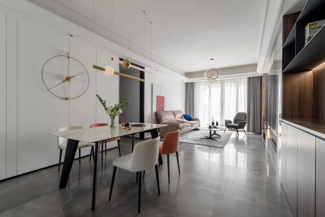 软装布置上不拘泥于单品的款式,而强调整体性与和谐感,皆是屋主海淘的原创设计和高定系列,屋内各角落皆是设计匠心,为低调包容的极简空间谱写满满格调气质。