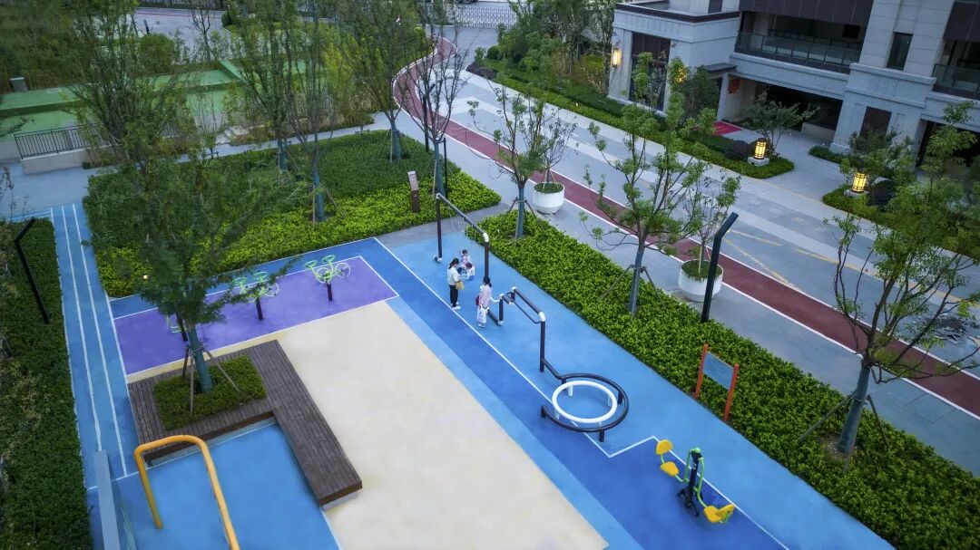 健康步道串联单元入口,形成联动社区体系。设计多样的消防登高面,不仅丰富宅间景观,也提升居住舒适度。