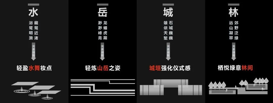 将南京自然景色“水、岳、城、林”融入项目设计,以简约形式流露出文化浸润,拒绝生硬刻意。