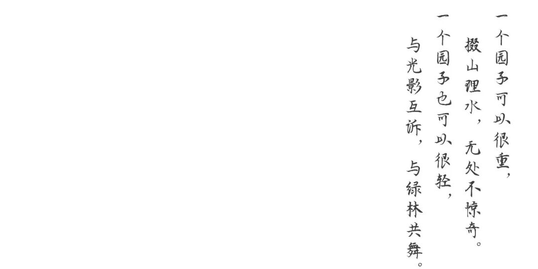 静泊草台唤客来,妙语闲厅邀月台。划分植物空间的开合关系,园路的曲折变化增添空间体验感与层次感。造园艺术的奥妙,赋予中庭空间静谧与欢悦的感受。
